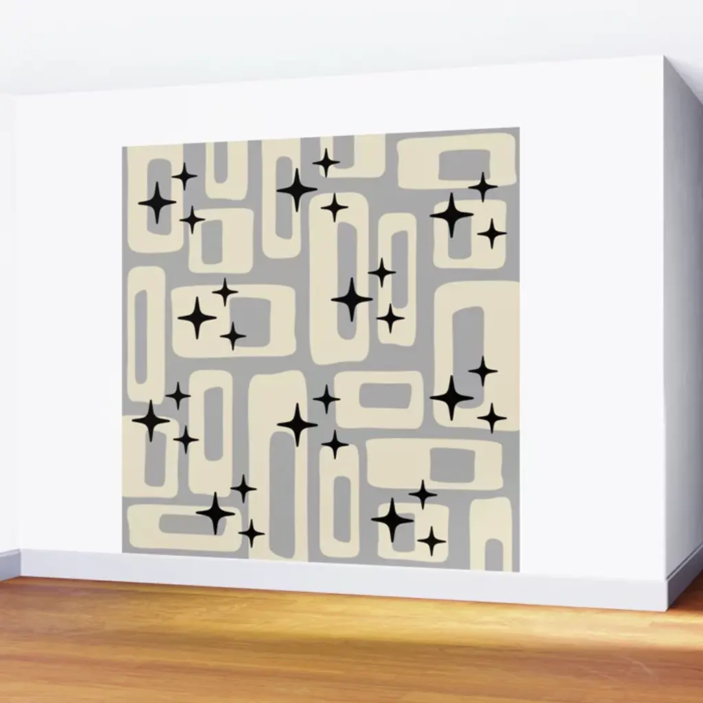 Retro Mid Century Modern Abstract Pattern 576 Gray Black Wall Mural