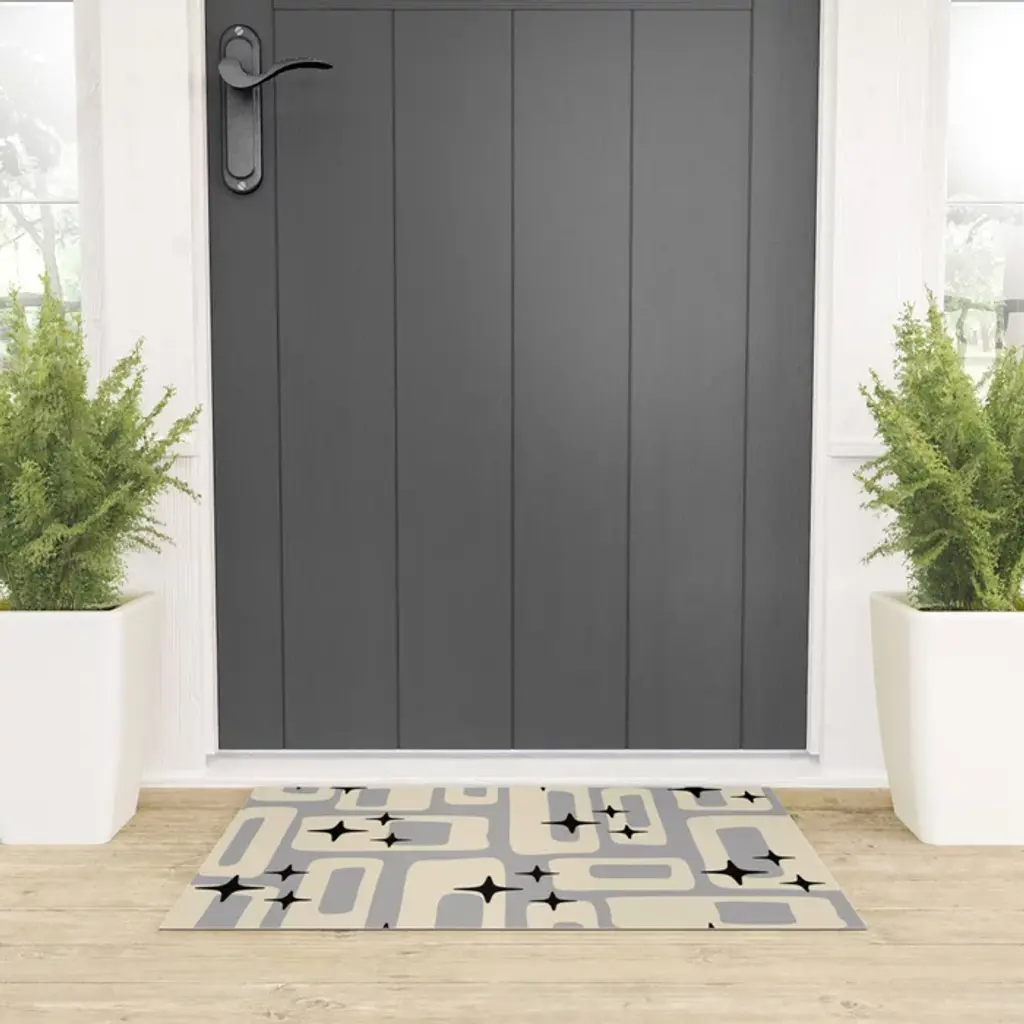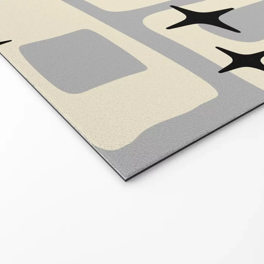 Retro Mid Century Modern Abstract Pattern 576 Gray Black Welcome Mat