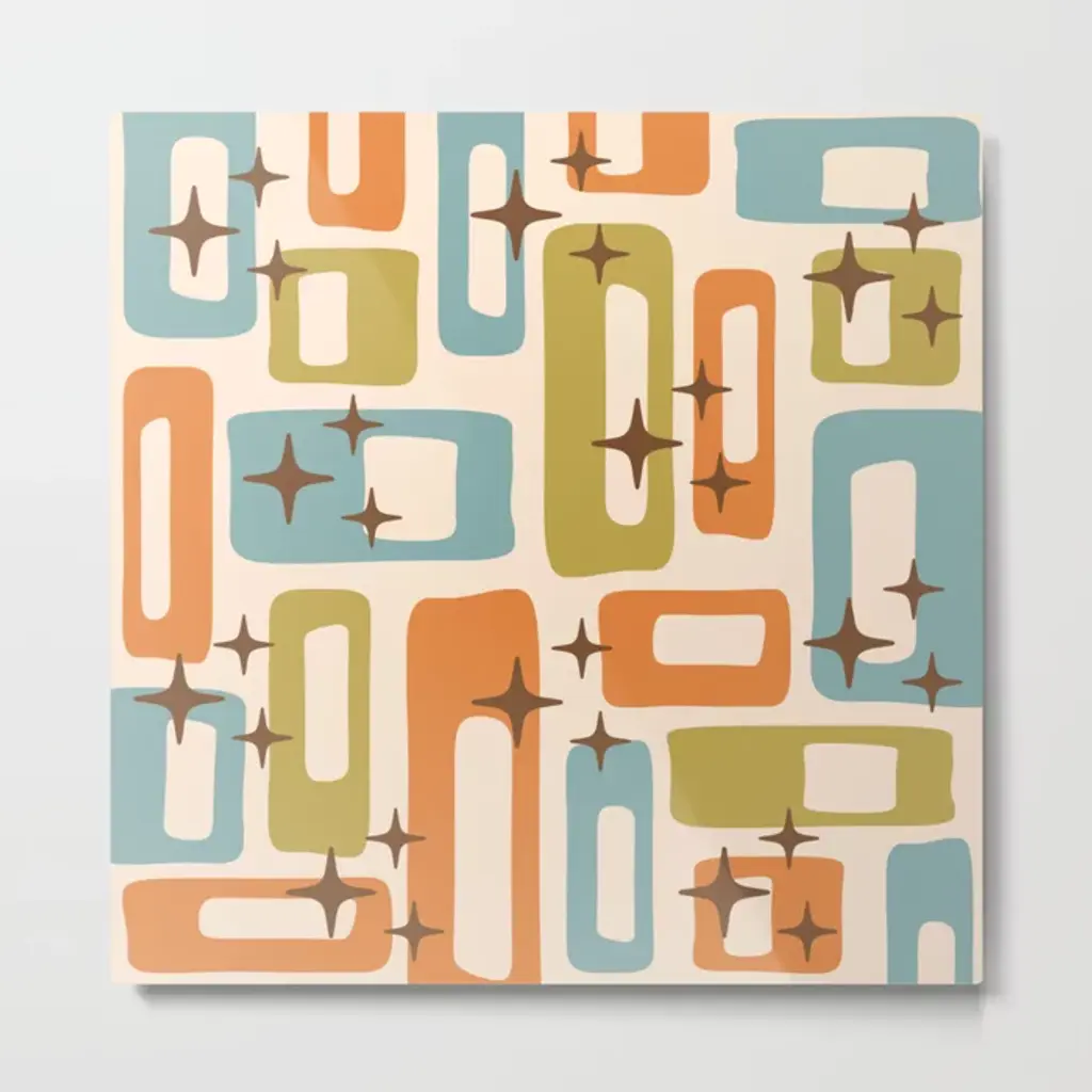 Retro Mid Century Modern Abstract Pattern 577 Yellow Brown Metal Print