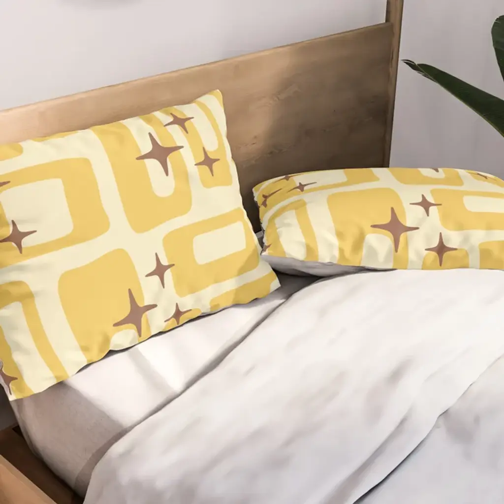 Retro Mid Century Modern Abstract Pattern 577 Yellow Brown Pillow Sham