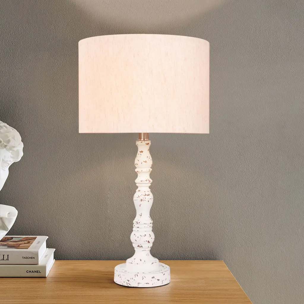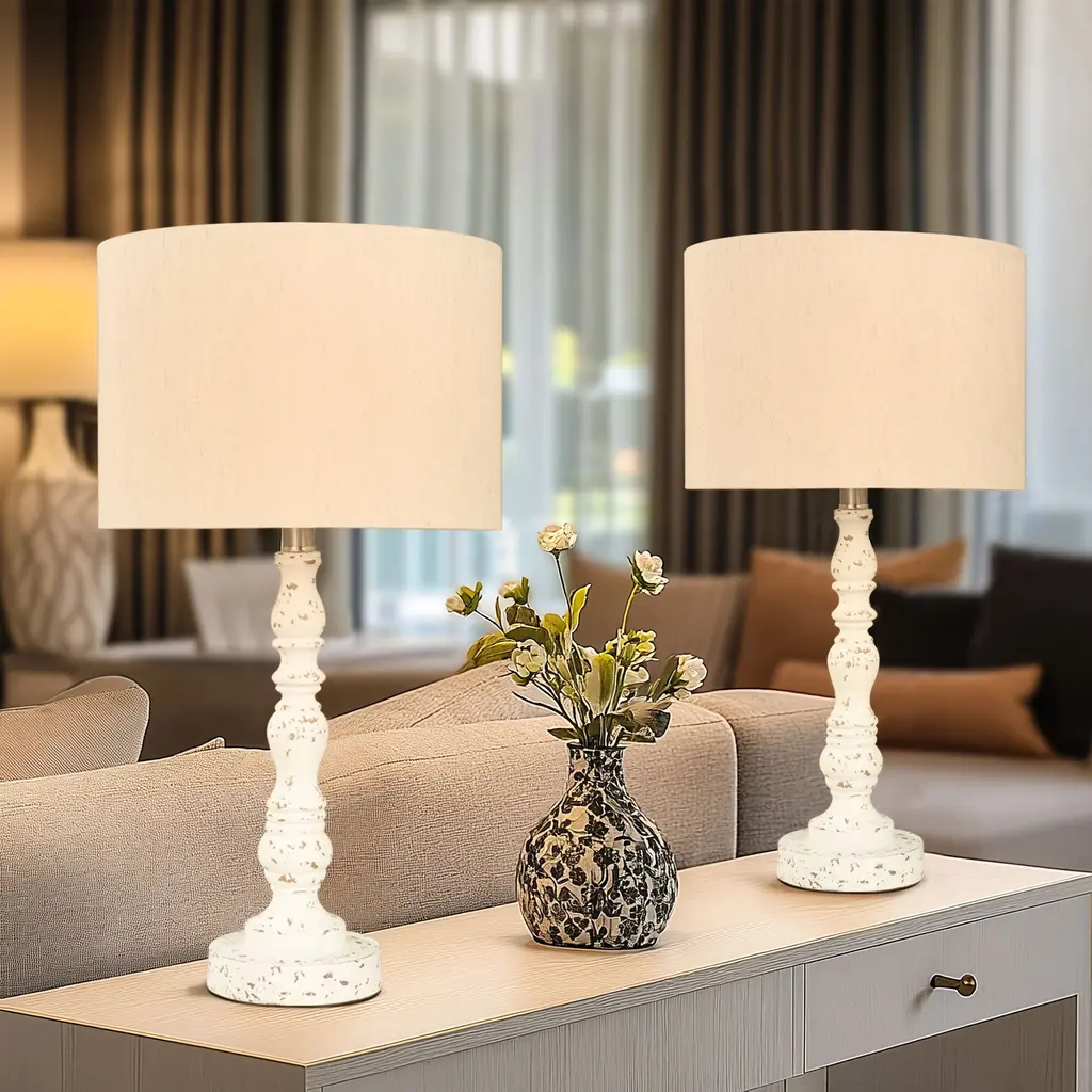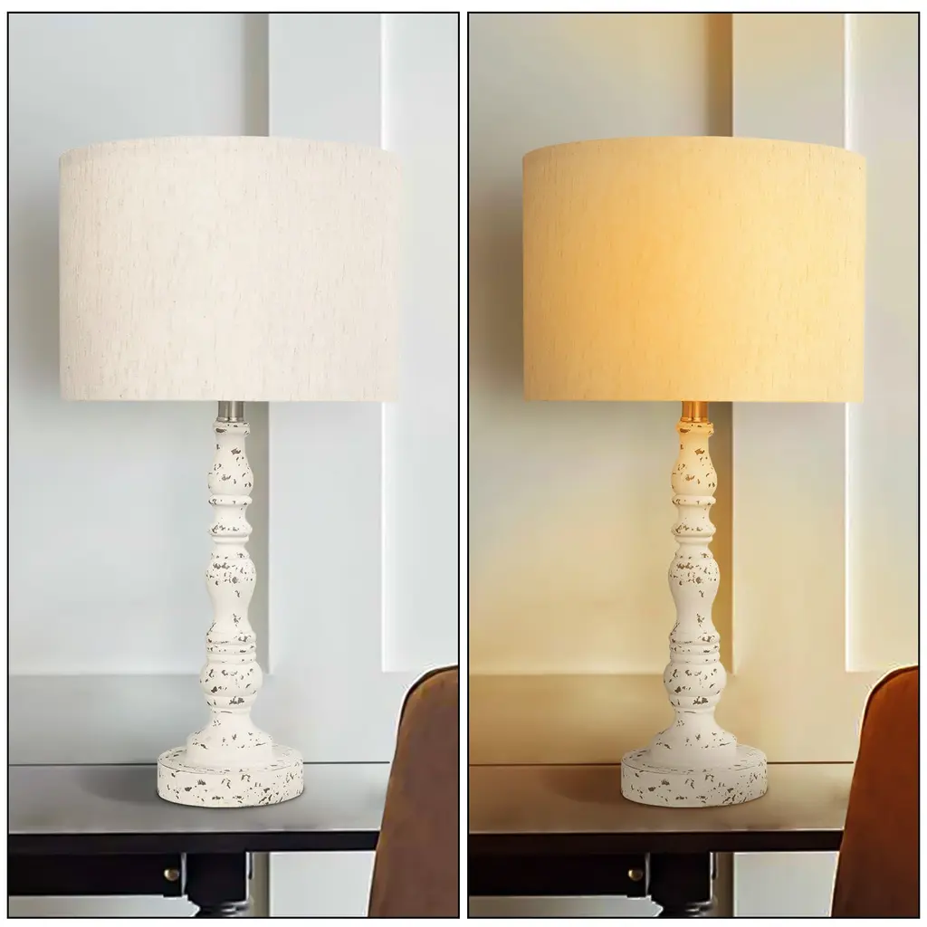 Retro Nightstand Resin Table Lamps With Linen Shade (Set Of 2) - White