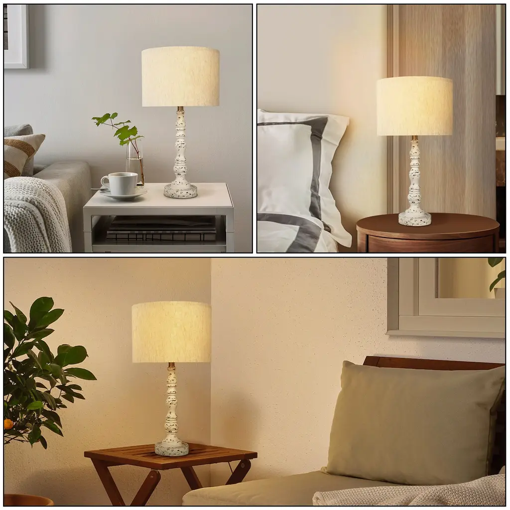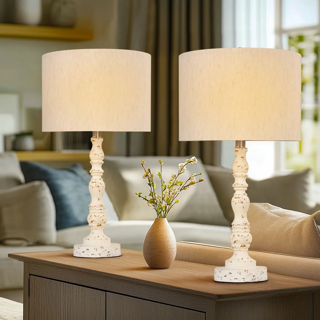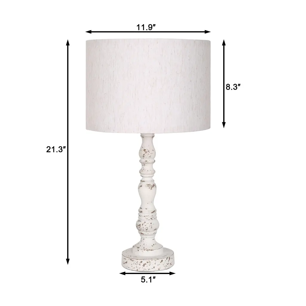 Retro Nightstand Resin Table Lamps With Linen Shade (Set Of 2) - White