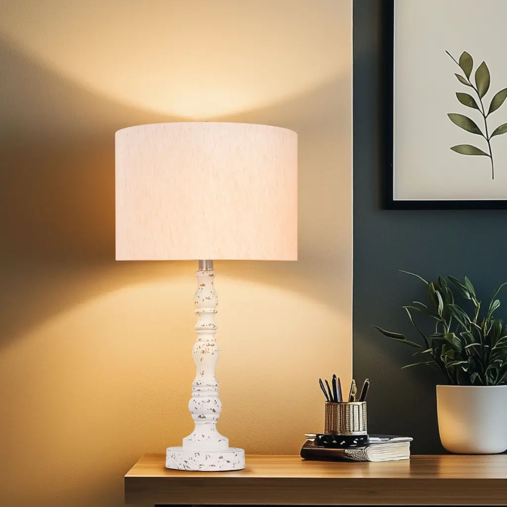 The desk lamp is a versatile and stylish illuminating device that not only effectively brightens up the room but also seamlessly blends with various decor styles. It's simply irresistible! For example, this elegant desk lamp is perfect for creating a subtle yet chic ambiance in your room. Crafted from white resin, its slender design showcases graceful curves and features a cylinder shade at the top, maintaining a harmonious monochromatic look.Feature:Highlight:
