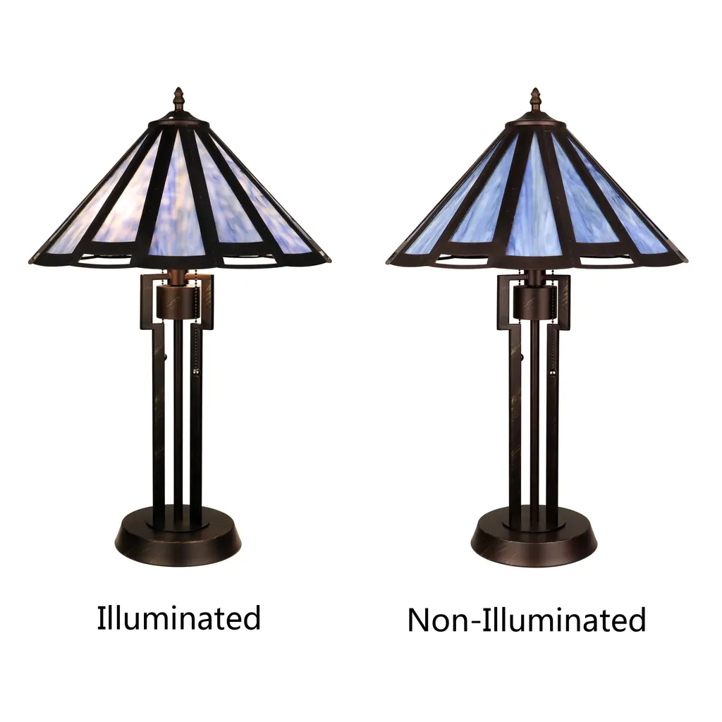 Retro-Style Stained Glass 2-Light Table Lamp 18" Shade. - 16" - 16" - Blue