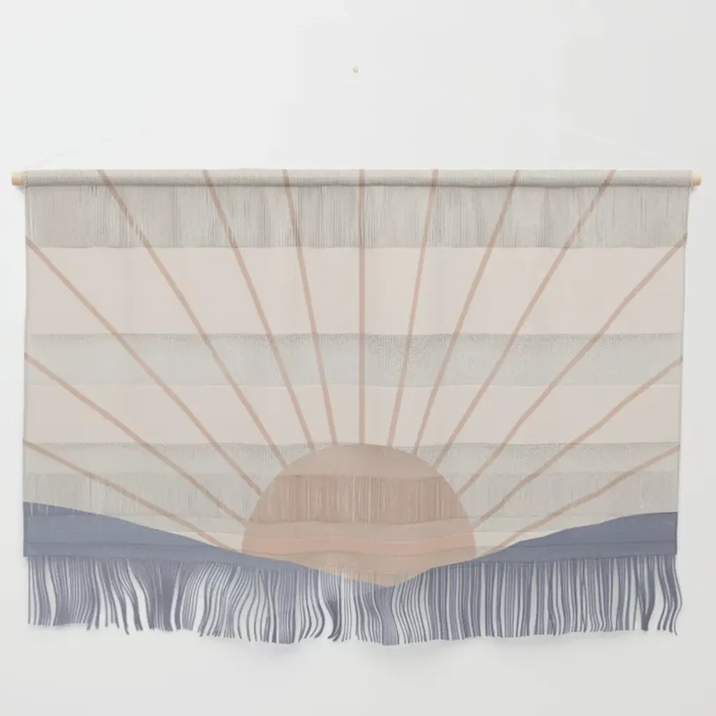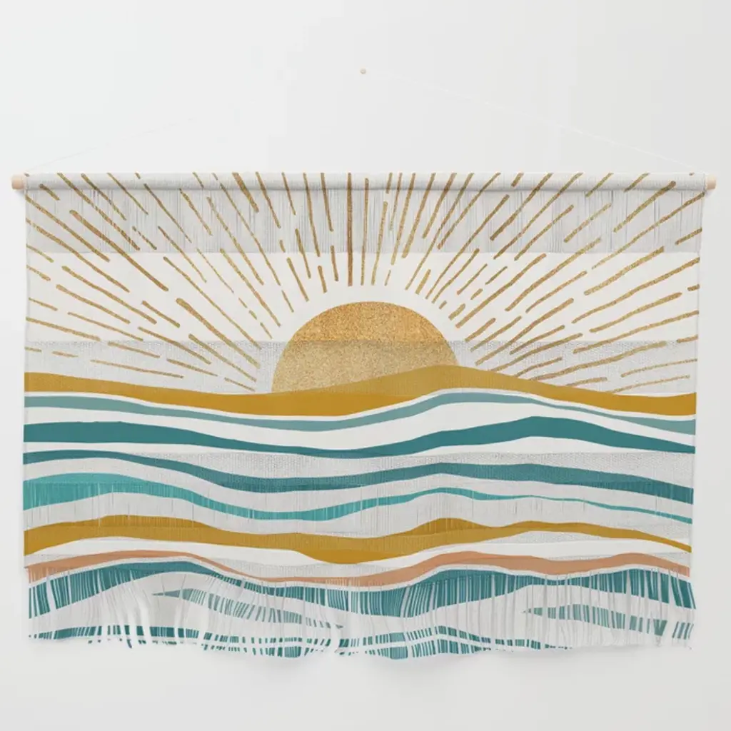 Retro, Sun And Wave Art, Blue And Orange Wall Hanging