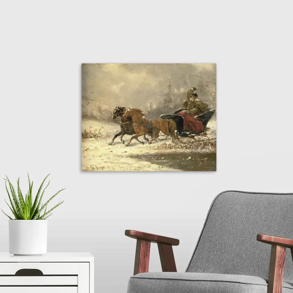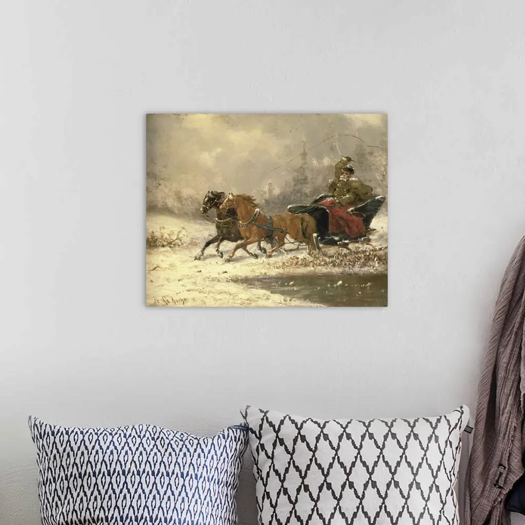 BAL15233 Returning Home in Winter by De La Roche, Charles Ferdinand (fl.1868); oil on canvas; Private Collection; French, out of copyright