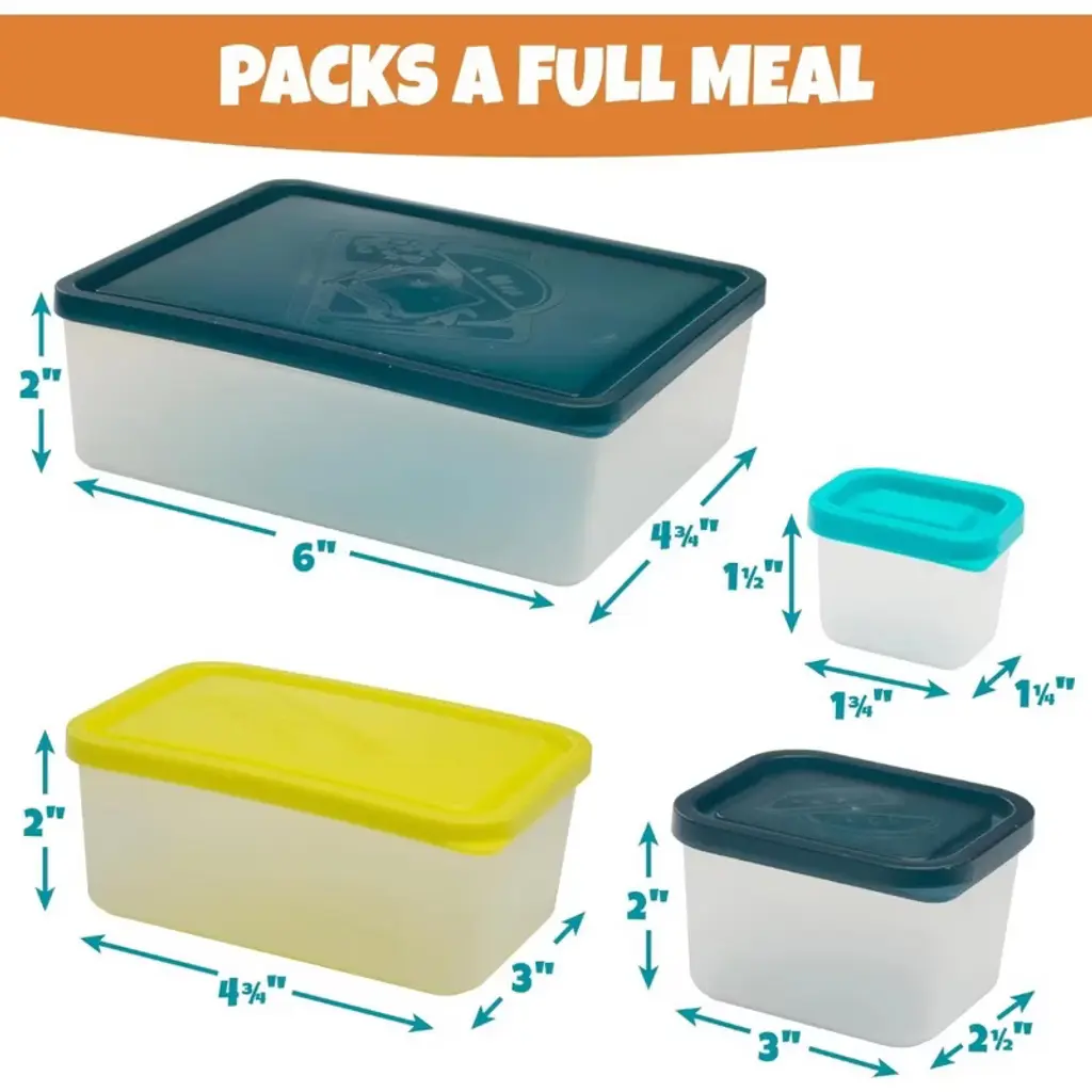 Comes with 4 translucent multi-purpose meal prep containers that make it easy for you to have a well-balanced portioned meal on the go! Great for meal prep pre-packing on-the-go snacks and meals. Also great for storing leftovers! Durable reusable and easy to clean--containers are dishwasher and microwave safe (containers not lids). Lids and containers can be used on their own or in the Bentology Bento Box for maximum versatility. BPA Lead Phthalates and PVC Free, and Recyclable.