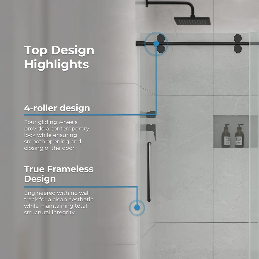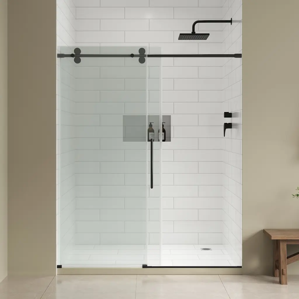 Reva Frameless Sliding Clear Alcove Shower Door Black - 60" - Black