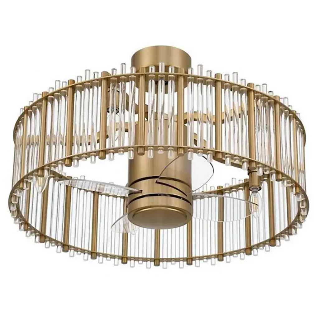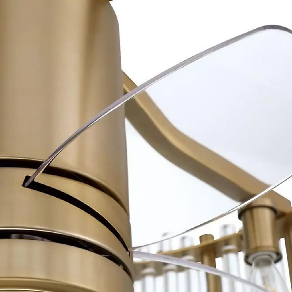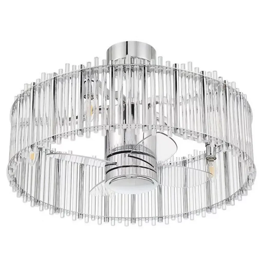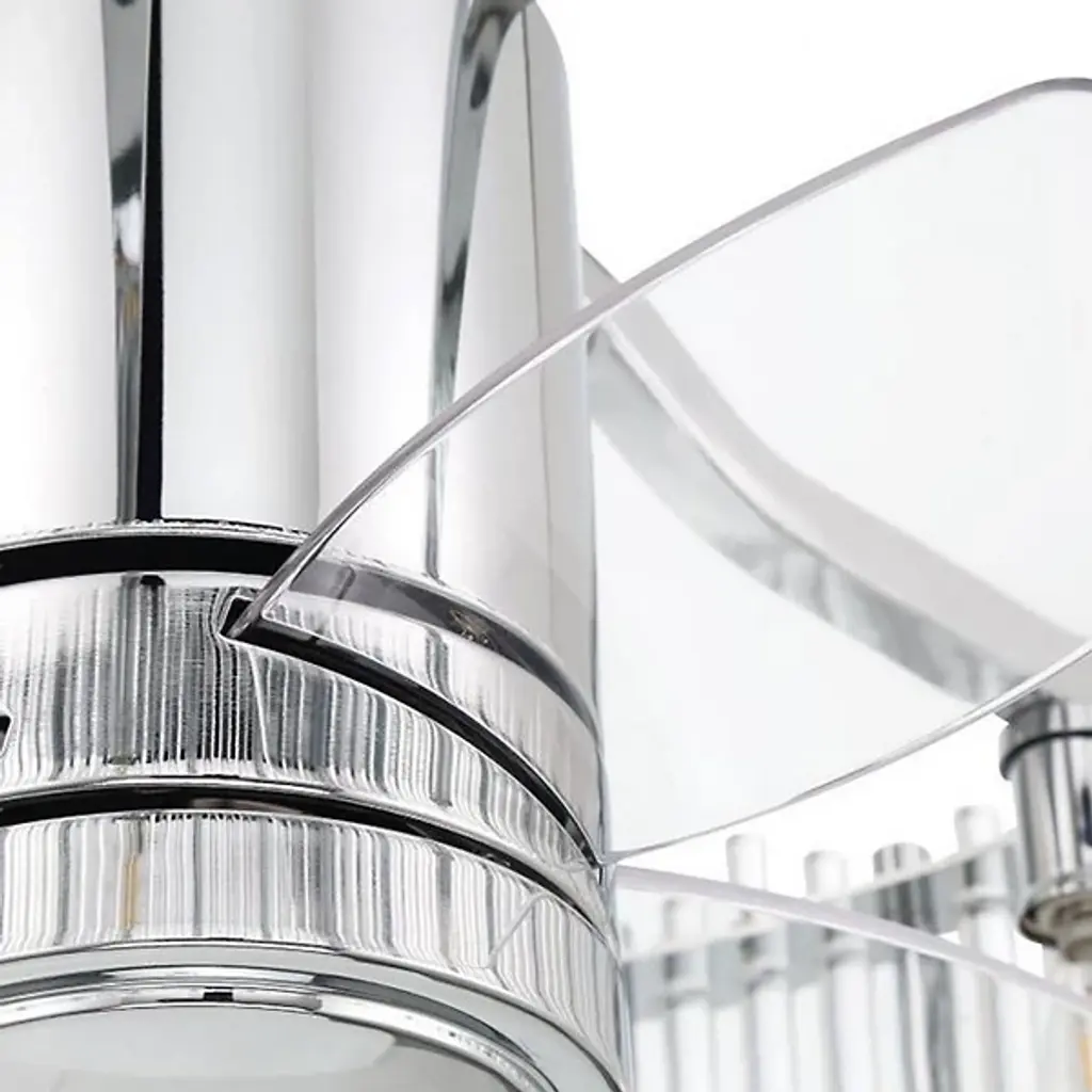 The Reveal Smart Fandelier from Craftmade Fans has the elegance of a chandelier and the functionality of a fan in a single well-designed fixture. This piece is crafted from premium materials, including silicon, steel, copper, and aluminum, providing exceptional durability and a 21st-century aesthetic. The acrylic shade adds sophistication and tempers the LED illumination. It's sloped-ceiling adaptable and features 4 clear blades with a 14-degree pitch. It is powered by a DC motor that offers 6-speed settings in forward and reverse.