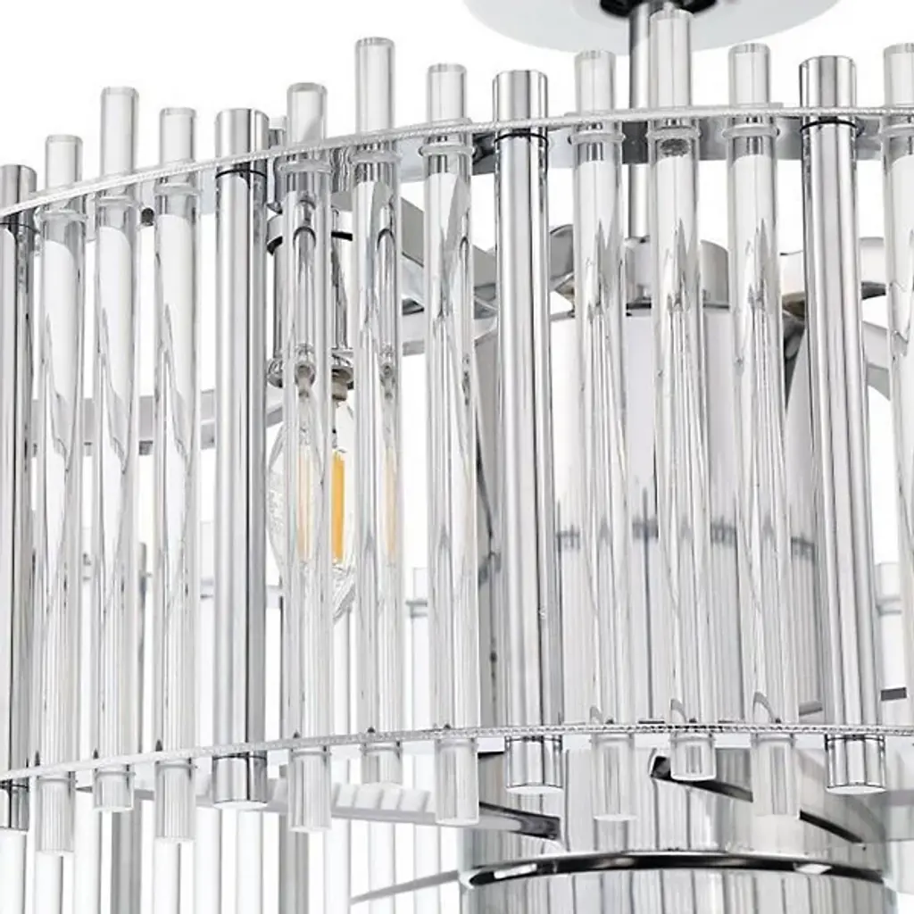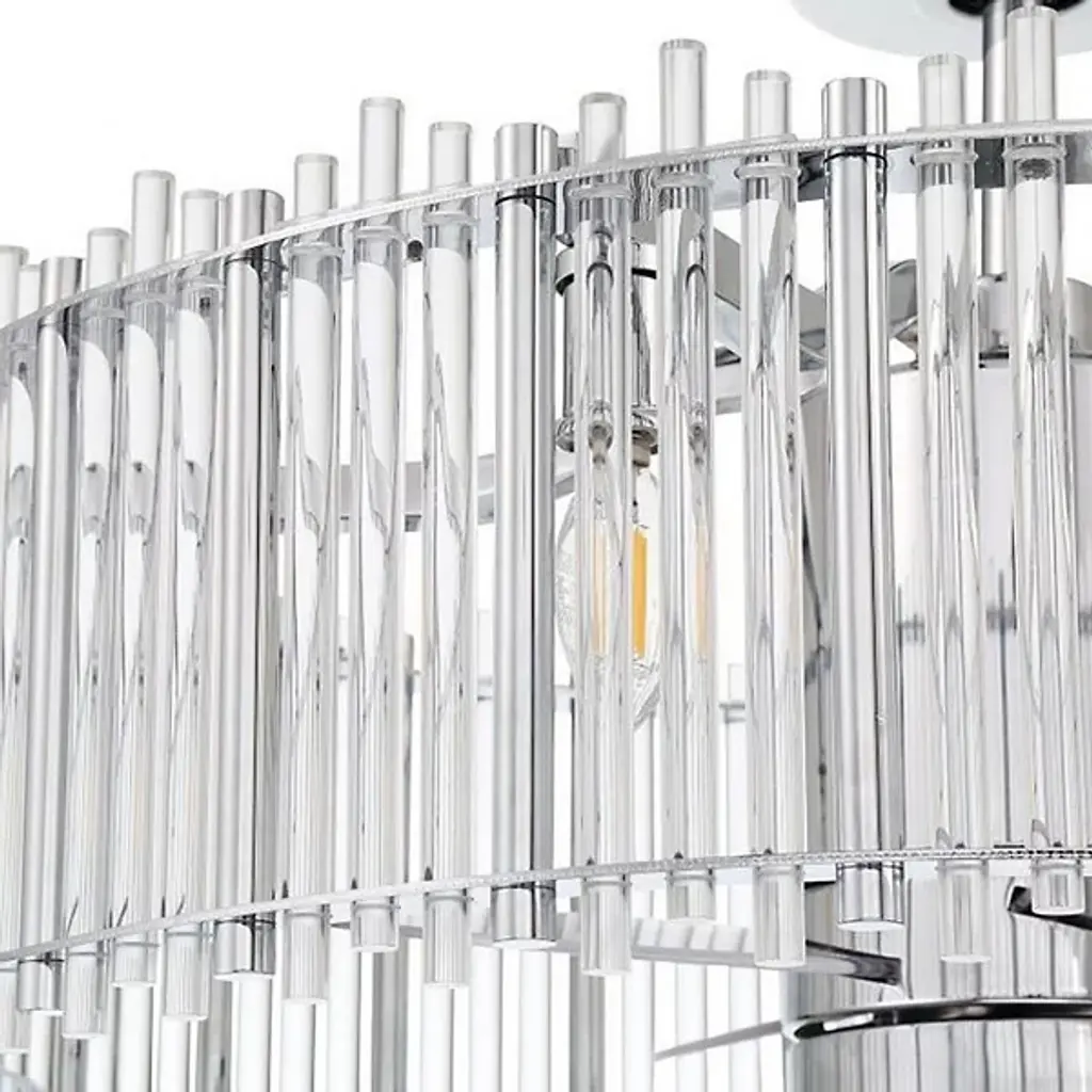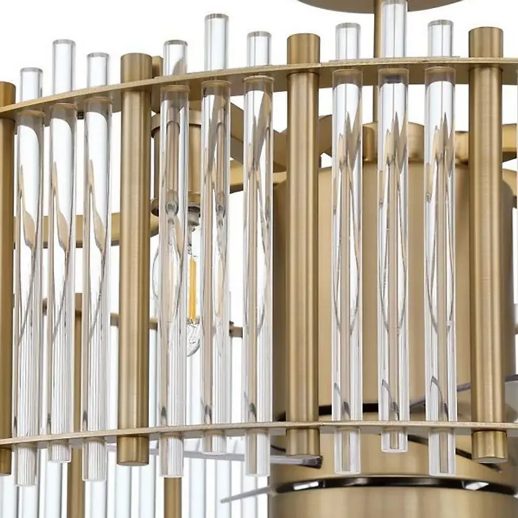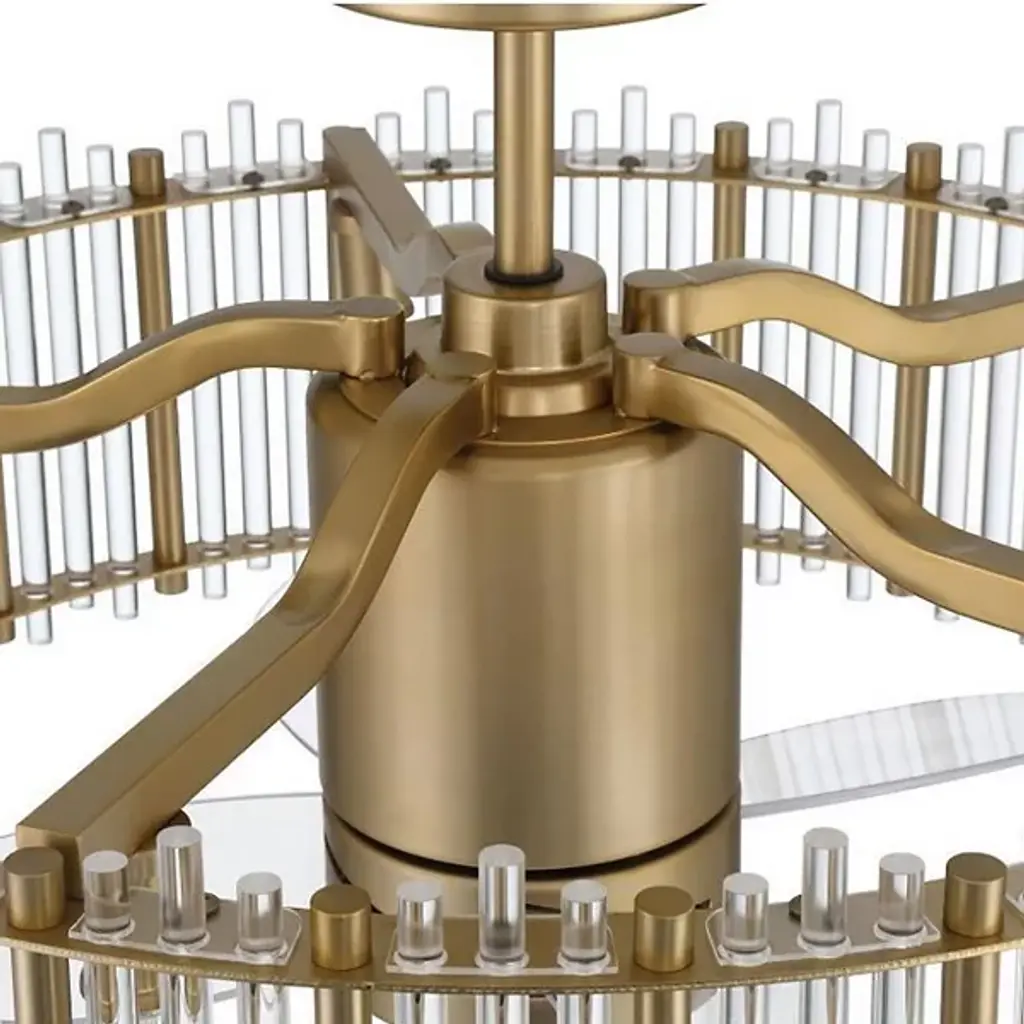 The Reveal Smart Fandelier from Craftmade Fans has the elegance of a chandelier and the functionality of a fan in a single well-designed fixture. This piece is crafted from premium materials, including silicon, steel, copper, and aluminum, providing exceptional durability and a 21st-century aesthetic. The acrylic shade adds sophistication and tempers the LED illumination. It's sloped-ceiling adaptable and features 4 clear blades with a 14-degree pitch. It is powered by a DC motor that offers 6-speed settings in forward and reverse.