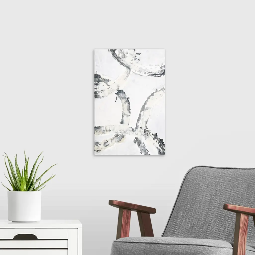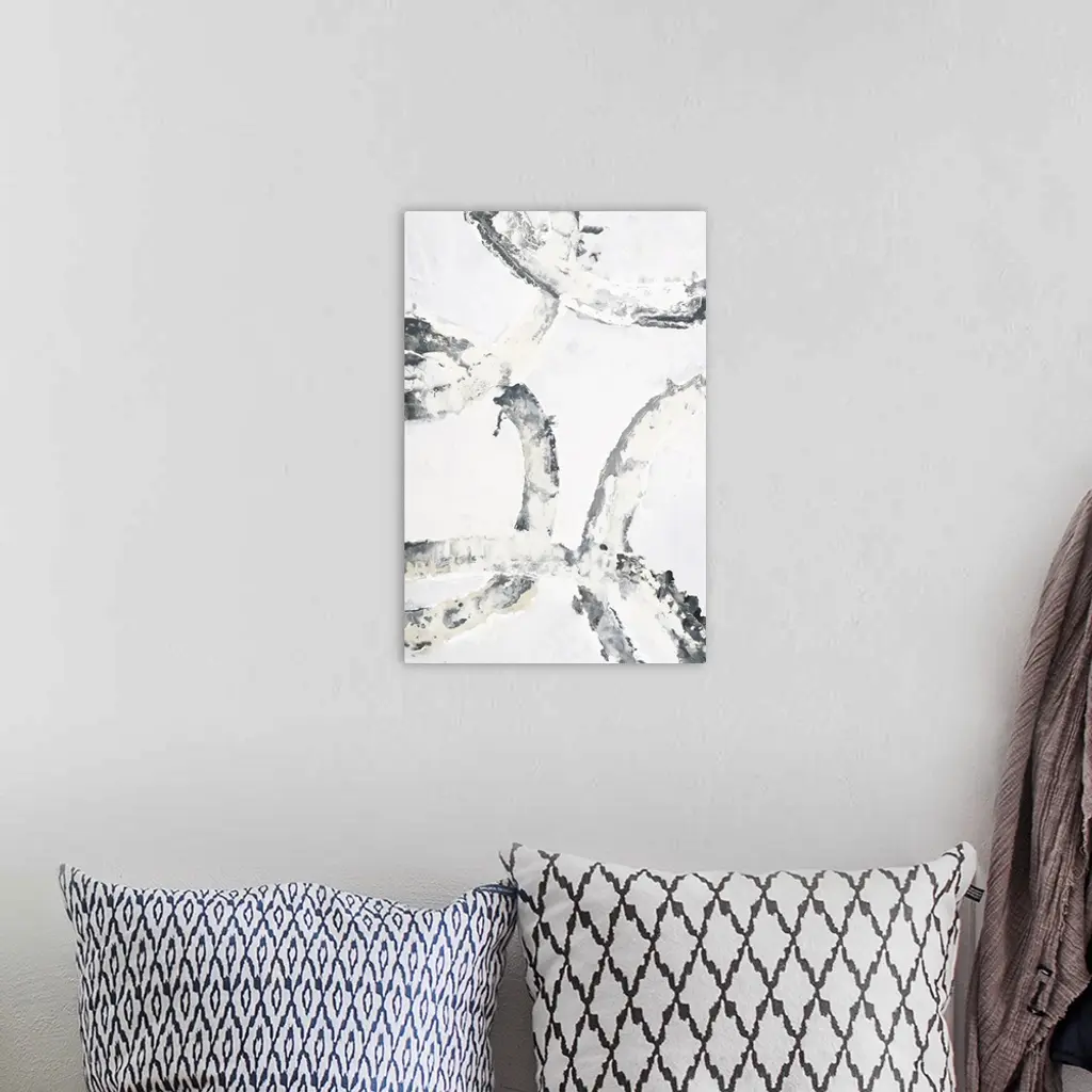 Black, white, gray, and tan hues used to create intertwining circles on a white background.