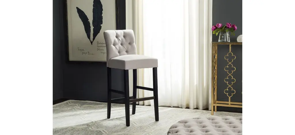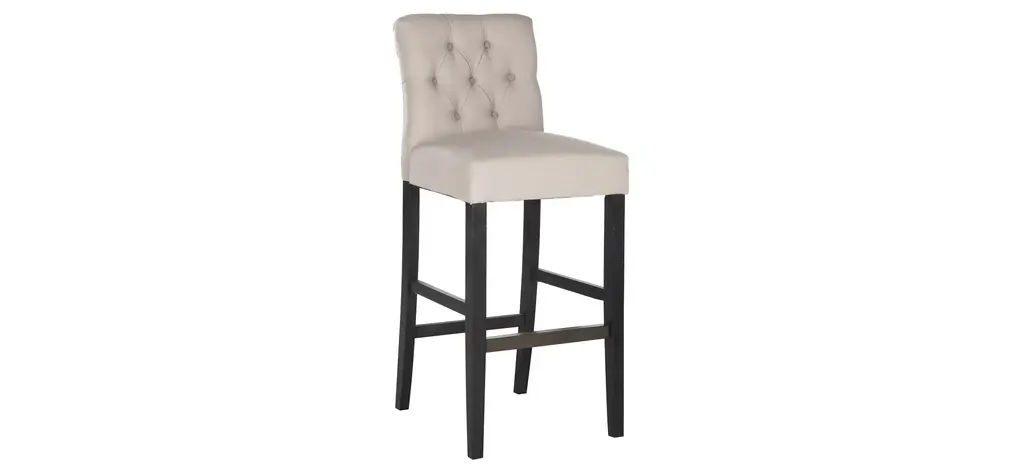 A top selection of interior designers, this modern Rex bar stool boasts a higher standard of style and substance. Its refined, tufted upholstery is paired with svelte espresso legs for a posh combination that makes any gathering a gourmet affair.