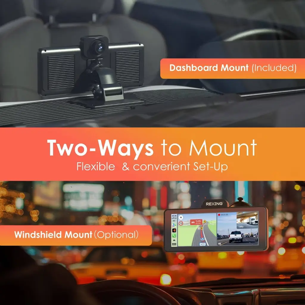 Enhance Your Driving Experience with the REXING RoadMate 6.86"Discover the perfect fusion of safety and multimedia in the REXING RoadMate. This advanced device features a dual-channel dash cam with 4K UHD front and Full HD rear cameras, capturing every detail on the road. The 6.86-inch touchscreen brings smartphone integration to your dashboard via Apple CarPlay and Android Auto, making GPS navigation, media streaming, and hands-free communication effortless and accessible.Easy to install with a direct connection to your car's cigarette lighter and versatile mounting options, the RoadMate is designed for convenience. It transforms your vehicle into a connected, safe, and entertainment-rich environment, ensuring every journey is logged and luxurious.