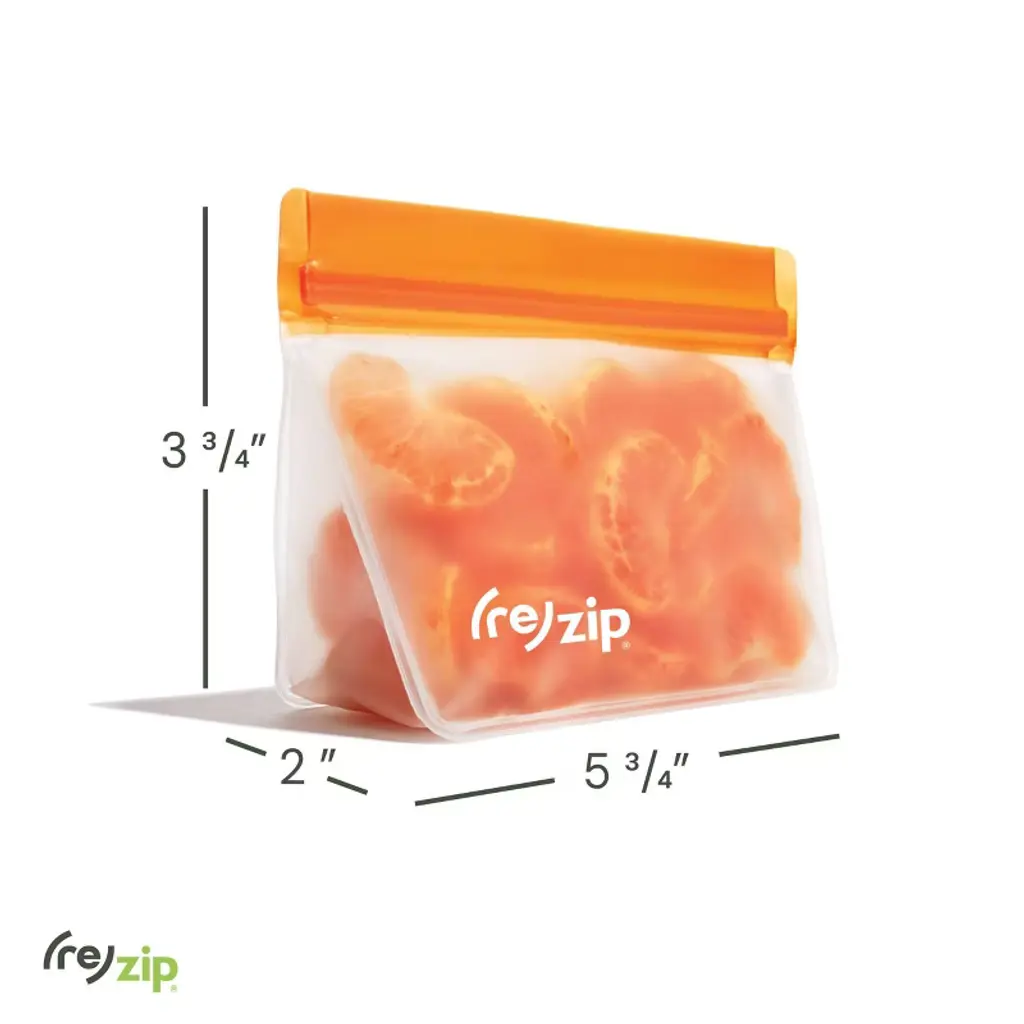Snack smarter with the (re)zip 5-pack of Reusable Stand-Up Snack Bags—each holding 1 cup (8 fl oz) and designed to make lunch-packing, meal prepping, and snack-sorting a breeze. Each 8 fl oz bag is durable and self-standing—perfect for portioning out snacks like cheerios, nuts, or cheese. The airtight, leakproof seal keep snacks fresh and keeps messes at bay, making it easy to toss into a lunchbox or bag. This colorful set comes in five jewel-toned colors helping keep things organized—whether you're assigning bags by family member or sorting allergy-friendly options.Each bag measures: 5.75 in x 2 in x 3.75 in and holds up to 1 cup (8 fl oz)