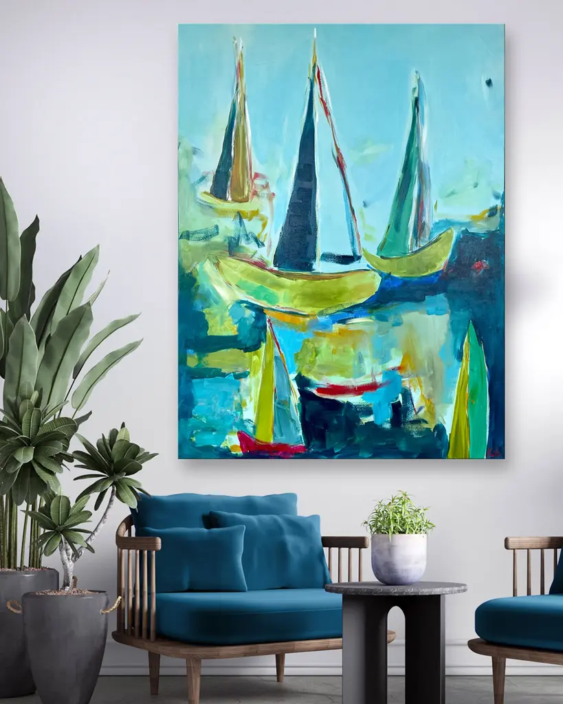Introducing "Come Sail Away", an abstract piece by artist Kate Baldock that features sailboats. It exudes coastal elegance, making it a beautiful addition to the walls of a beachfront home or nautical-themed room. Handcrafted giclee on gallery-wrapped canvas Hand-embellished with acrylic paint Overall, approx. 36"W x 2"D x 48"T D-rings attached to the back for hanging Hangs vertically Includes hanging hardware Wipe clean Weight, 6.0 lbs Made in USA Boxed weight, approximately 11.0 lbs Proposition 65 warning for California residents Shipping Direct from Vendor, usually ships within 30 business days. About RFA Fine Art: Founded by Marvin Rosenbaum and Howard Rosenbaum in 1979, RFA Fine Art showcases the works of talented artists from across the country. The Rosenbaums are well respected in the art world, and their considerable combined experience situates them perfectly for identifying and encouraging emerging new artists.