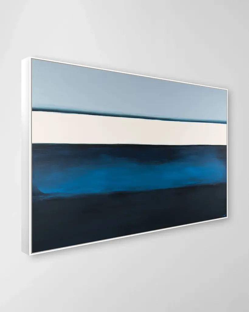 The subtle blue gradient of "Gradual Blue" by artist H. Scott captures attention while complementing spaces with understated luxury. Handcrafted giclee on gallery-wrapped canvas Hand-embellished with acrylic paint Mounted in a wood floater frame Overall, approx. 61.5"W x 2"D x 51.5"T D-rings attached to the back for hanging Hangs horizontally Includes hanging hardware Wipe clean Weight, 16.0 lbs Made in USA Boxed weight, approximately 21.0 lbs Proposition 65 warning for California residents Shipping Direct from Vendor, usually ships within 30 business days. About RFA Fine Art: Founded by Marvin Rosenbaum and Howard Rosenbaum in 1979, RFA Fine Art showcases the works of talented artists from across the country. The Rosenbaums are well respected in the art world, and their considerable combined experience situates them perfectly for identifying and encouraging emerging new artists.