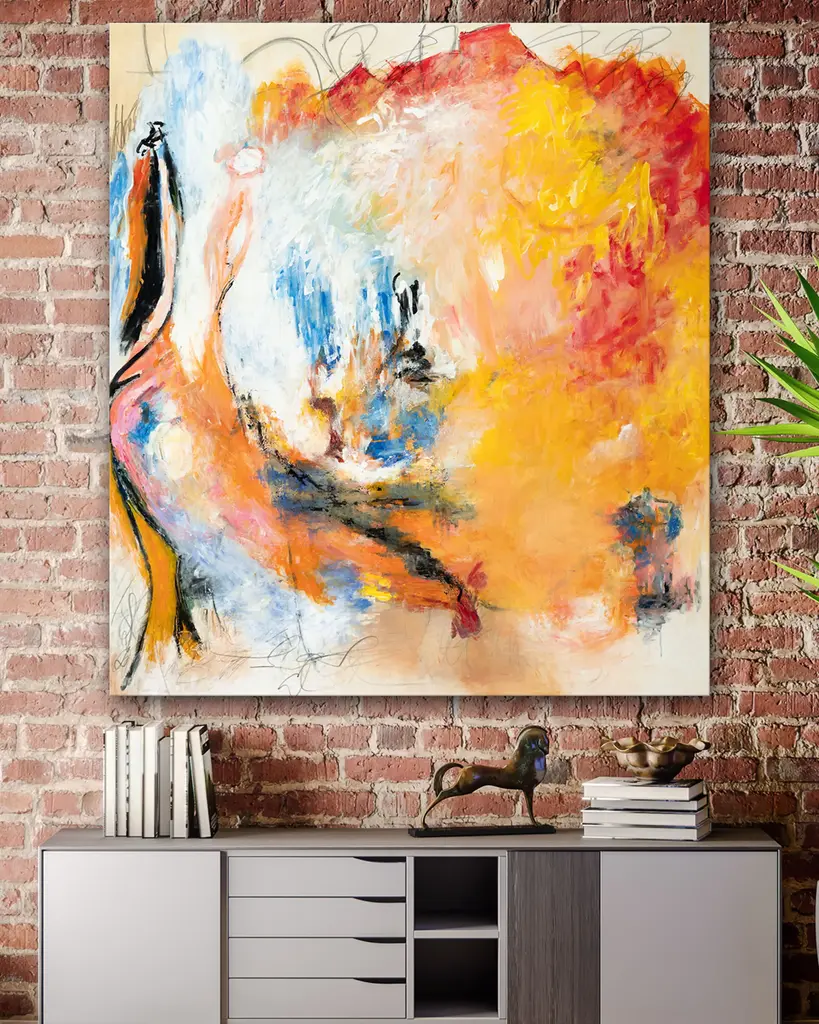 Add energy and warmth to any space with the vibrant orange hues of "Orange Abstract" by artist Lara Brooke. Handcrafted giclee on gallery-wrapped canvas Hand-embellished with acrylic paint Overall, approx. 59.25"W x 2"D x 67"T D-rings attached to the back for hanging Hangs vertically Includes hanging hardware Wipe clean Weight, 15.0 lbs Made in USA Boxed weight, approximately 20.0 lbs Proposition 65 warning for California residents Shipping Direct from Vendor, usually ships within 30 business days. About RFA Fine Art: Founded by Marvin Rosenbaum and Howard Rosenbaum in 1979, RFA Fine Art showcases the works of talented artists from across the country. The Rosenbaums are well respected in the art world, and their considerable combined experience situates them perfectly for identifying and encouraging emerging new artists.