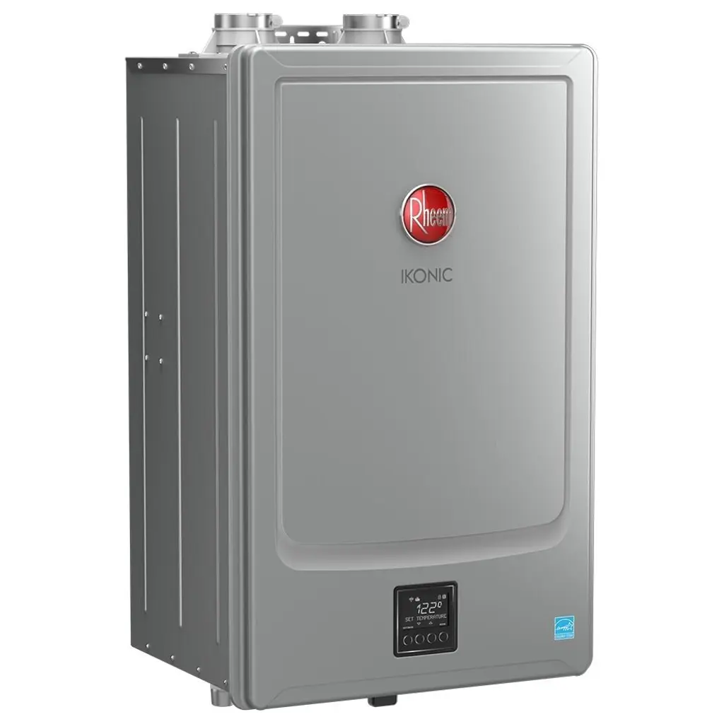 Rheem's RECTGH-SR10iP IKONIC Super High Efficiency condensing tankless liquid propane water heater features built-in recirculation delivers hot water with minimal wait, saving energy and water. The integrated EcoNet App and Wi-Fi control allows to control, monitor and customize your hot water usage from your phone or other smart device. The RECTGH-SR10iP dual heat exchanger technology maximizes efficiency and increases durability while you enjoy efficient, continuous, immediate hot water in your entire home. The compact size, wall mount and industry leading installation clearance allows for installation in small spaces saving valuable floor space.