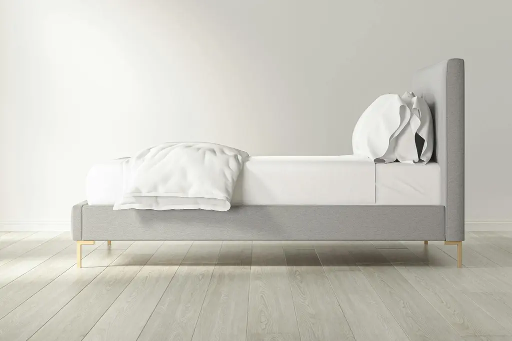 The Rhodes is a companion bed frame to our ever-popular Santorini. It boasts the same sleek, sophisticated lines, updated with a taller headboard and modern matte brass legs. No foundation or box spring required.