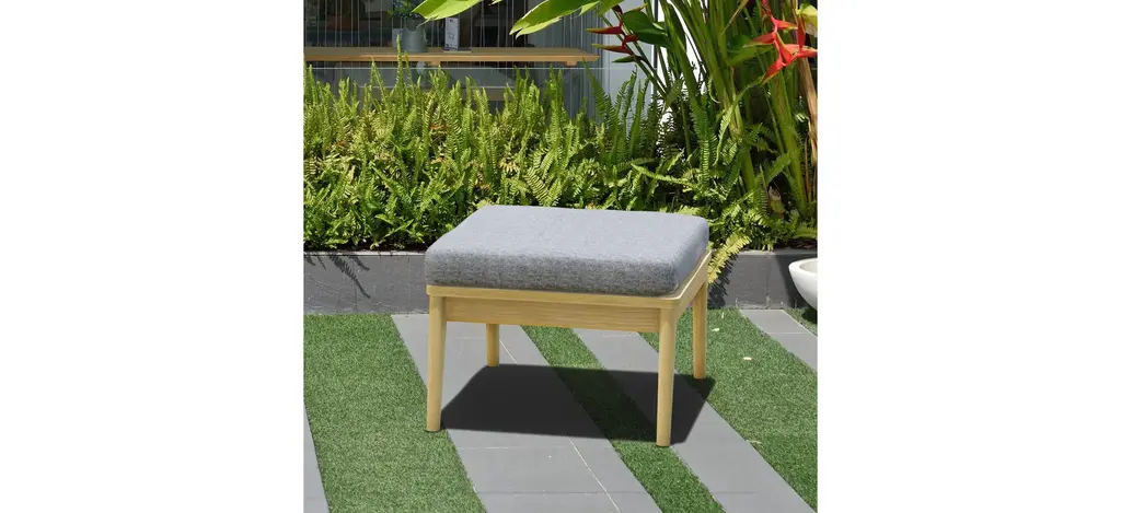 The Rhodes outdoor ottoman focuses on contemporary and modern designs, that is perfect for any outdoor space. The ottoman is made of wood materials are made of 100% FSC certified eucalyptus and certified high-quality teak wood.