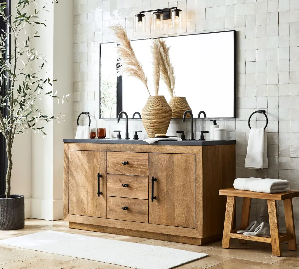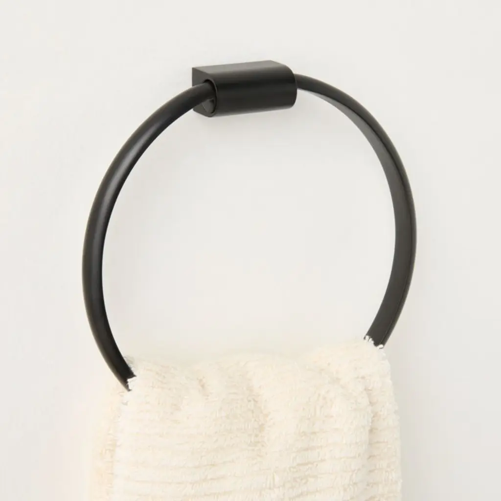 With clean lines and a slim profile, this towel ring seamlessly blends modern simplicity with a farmhouse aesthetic. Choose from an array of components to bring a cohesive look to the bath.