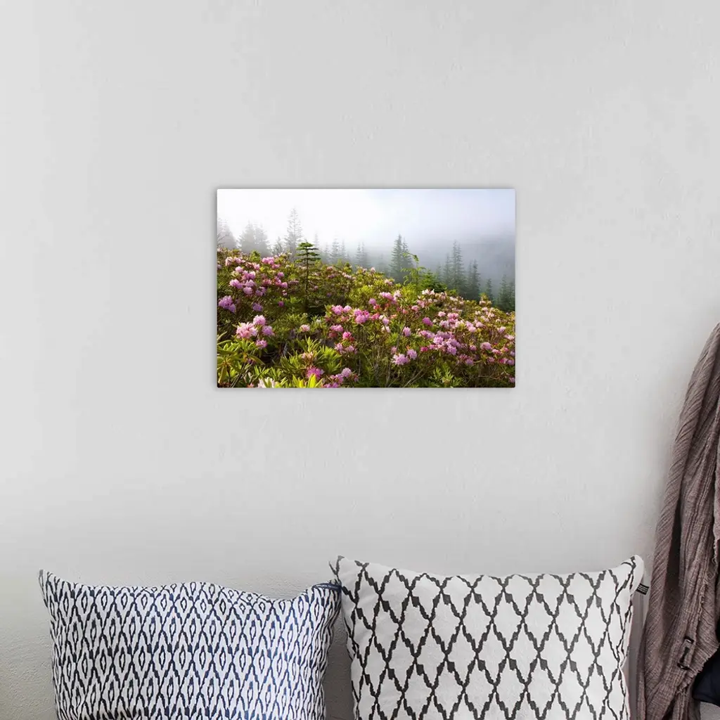 Rhododendron Bushes And Morning Fog Along Lolo Pass wall art for home and office decor. Discover canvas art prints, photos, mural, big canvas art and framed wall art in GreatBigCanvas.com's varied collections.