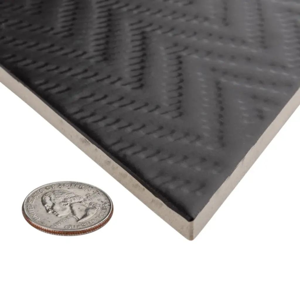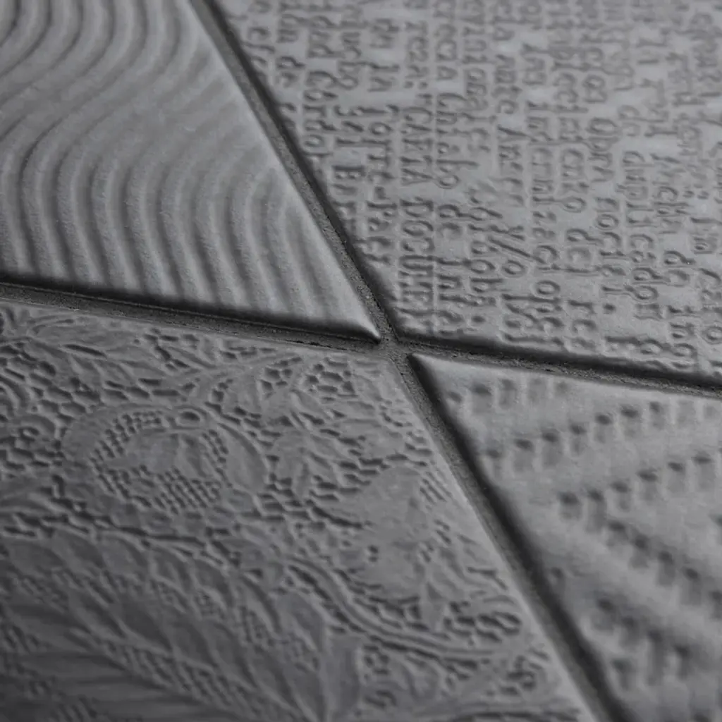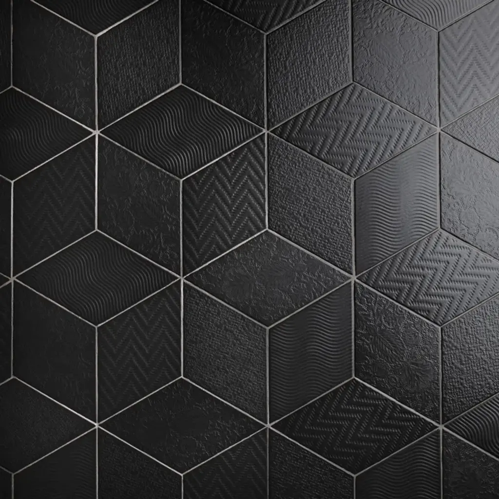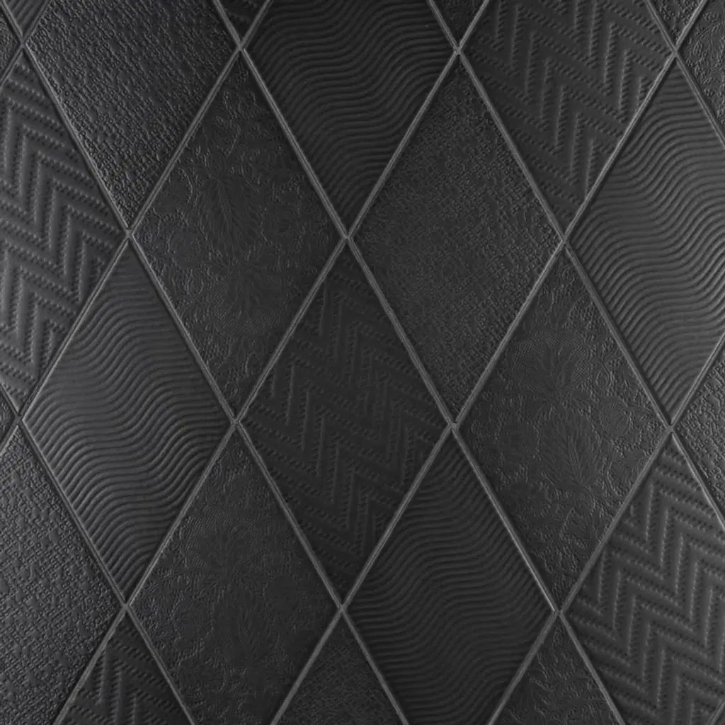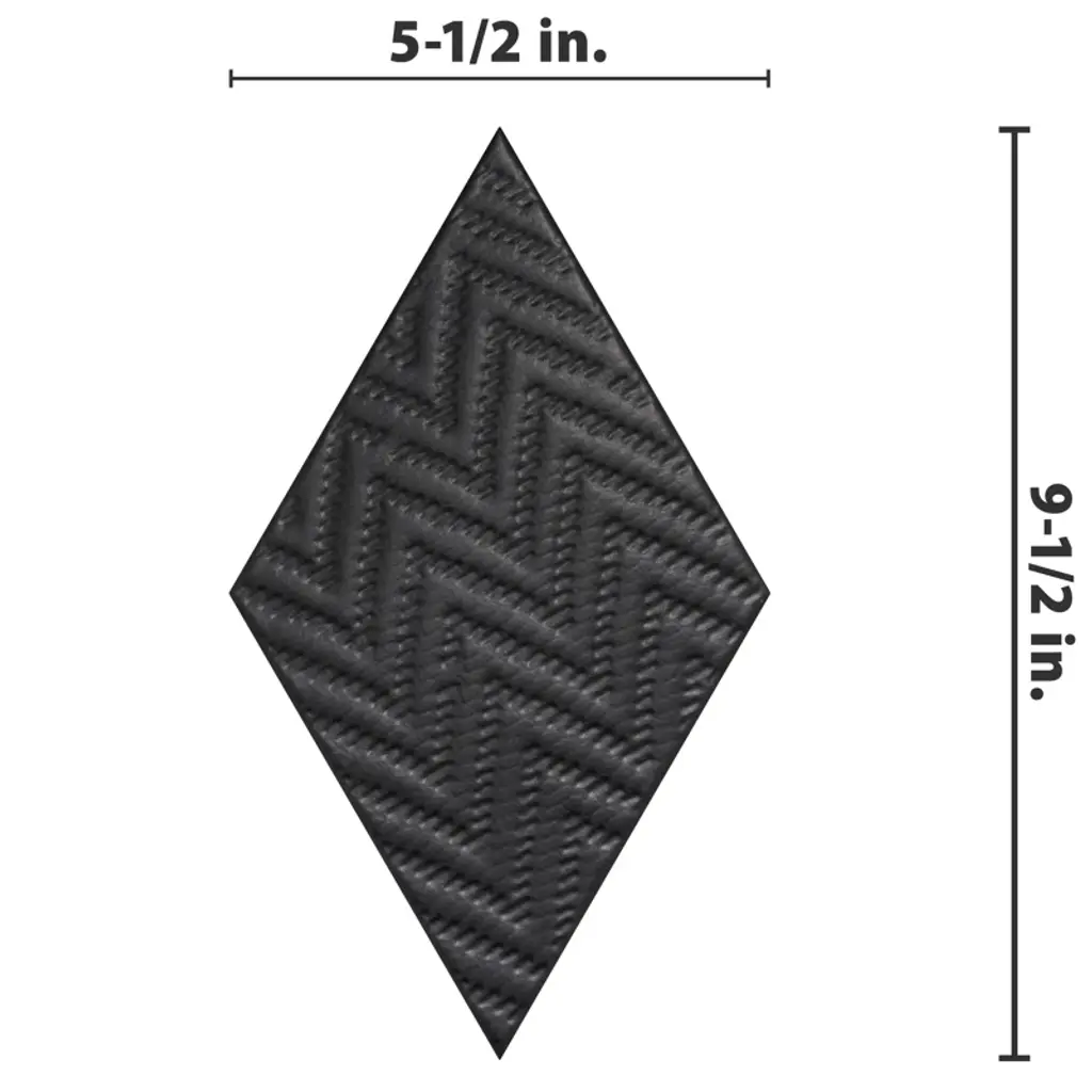Bring a modern, geometric look to your home with the Rhombus Black 5-1/2 in. x 9-1/2 in. Porcelain Floor and Wall Tile. This diamond-shaped tile features four unique patterns, including waves, zig-zags, floral lace and letters. The medium sheen black glaze offers a contemporary look for any installation. The unique shape of these tiles allows you to create endless layouts and designs. This slip resistant tile is great for most residential floors, including kitchens, showers and entryways. Look at the different color options in the series that coordinate to add definition and design to your living space.