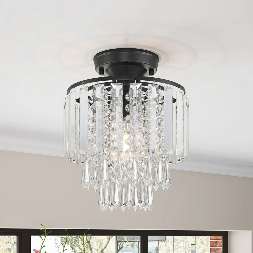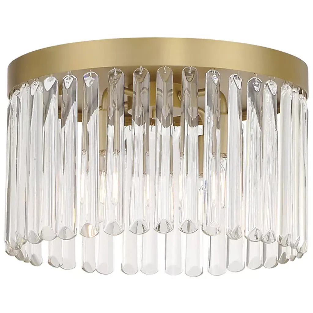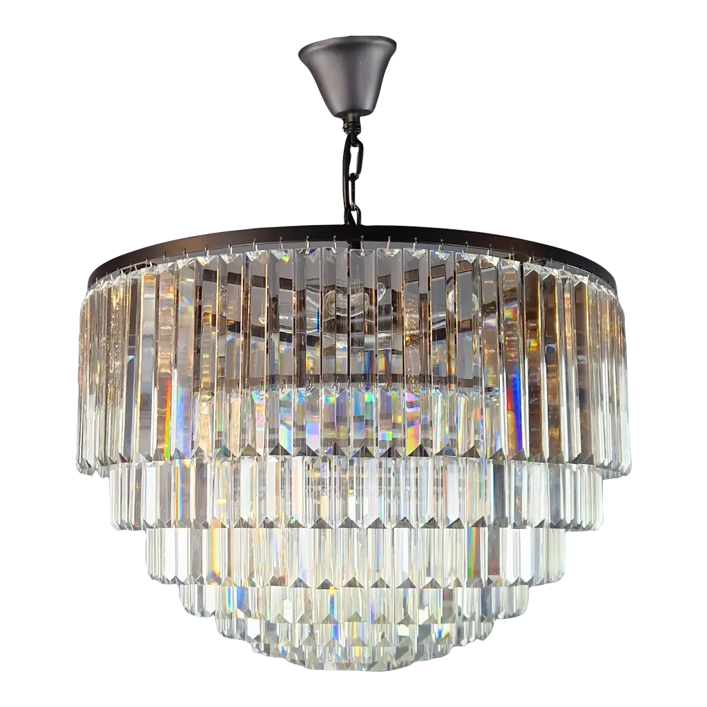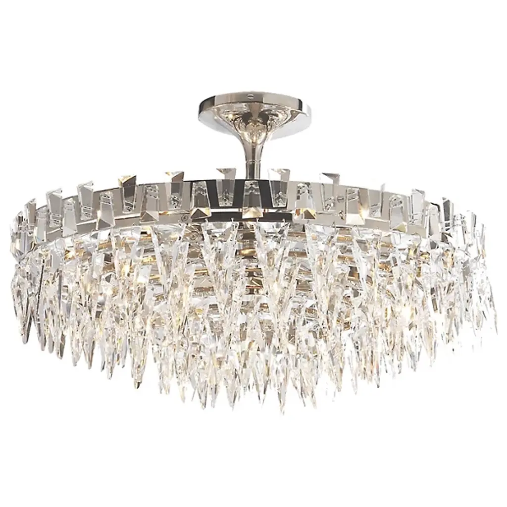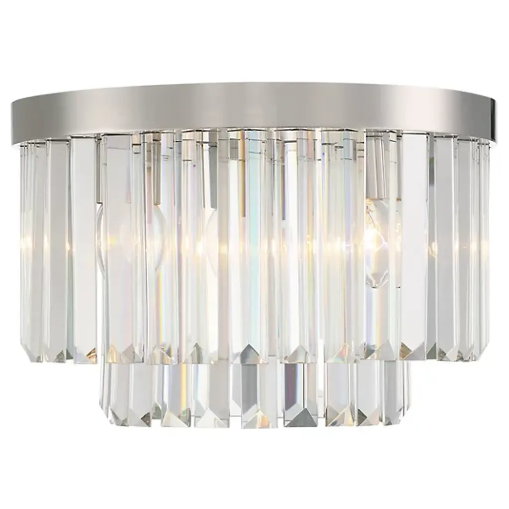 The Art Deco style born in 1920s Paris is evident in the straight-and-curved lines of our elegant lighting. Its optical-quality prisms, arranged in even, concentric rings, hang in sparkling harmony from an iron frame.SHOP THE ENTIRE COLLECTION