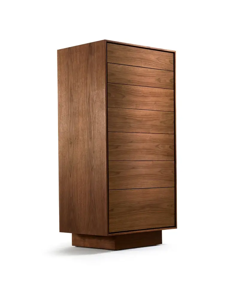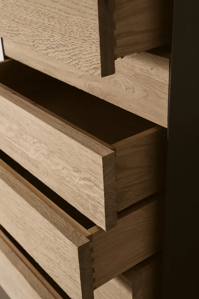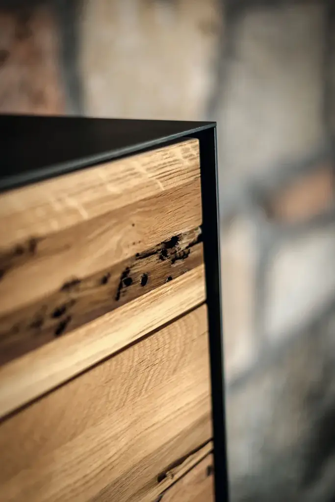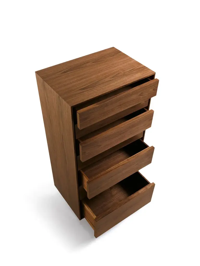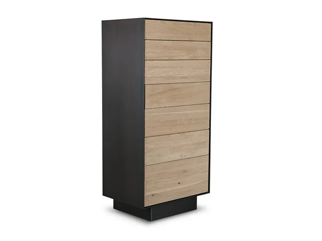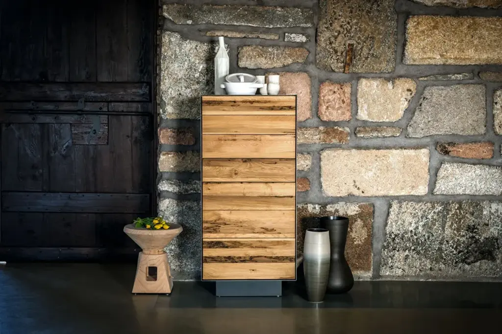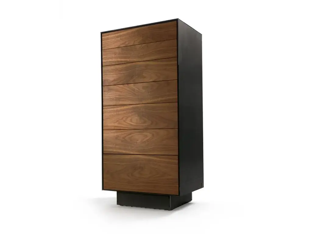 Rialto 2013 is a chest of drawers in solid wood and blockboard, with iron or wooden frame, characterized by drawers assembled with dovetail joints.AVAILABLE FINISHES:A1: walnut without knots, walnut with knotsA2: oak without knots, oak with knotsA4: oak without knots pigmented: milk white, total blackoak with knots pigmented: milk white, total blackN.B.: pigmented surfaces on outside only, inside oakA6: briccolaB2: lacquered iron: irondust, RAL (selected colours only)B3: lacquered iron with matt brushed effect: antique bronze, steel, titaniumAVAILABLE FINISHES - BACKRESTA4: oak without knots pigmented: milk white, total blackoak with knots pigmented: milk white, total blackN.B.: pigmented surfaces only outside, oak insideB2: lacquered iron: irondust, RAL (selected colours only)B3: matt brushed lacquered iron: antique bronze, steel, titaniumAVAILABLE FINISHES - FRONTSE4: moulded glass