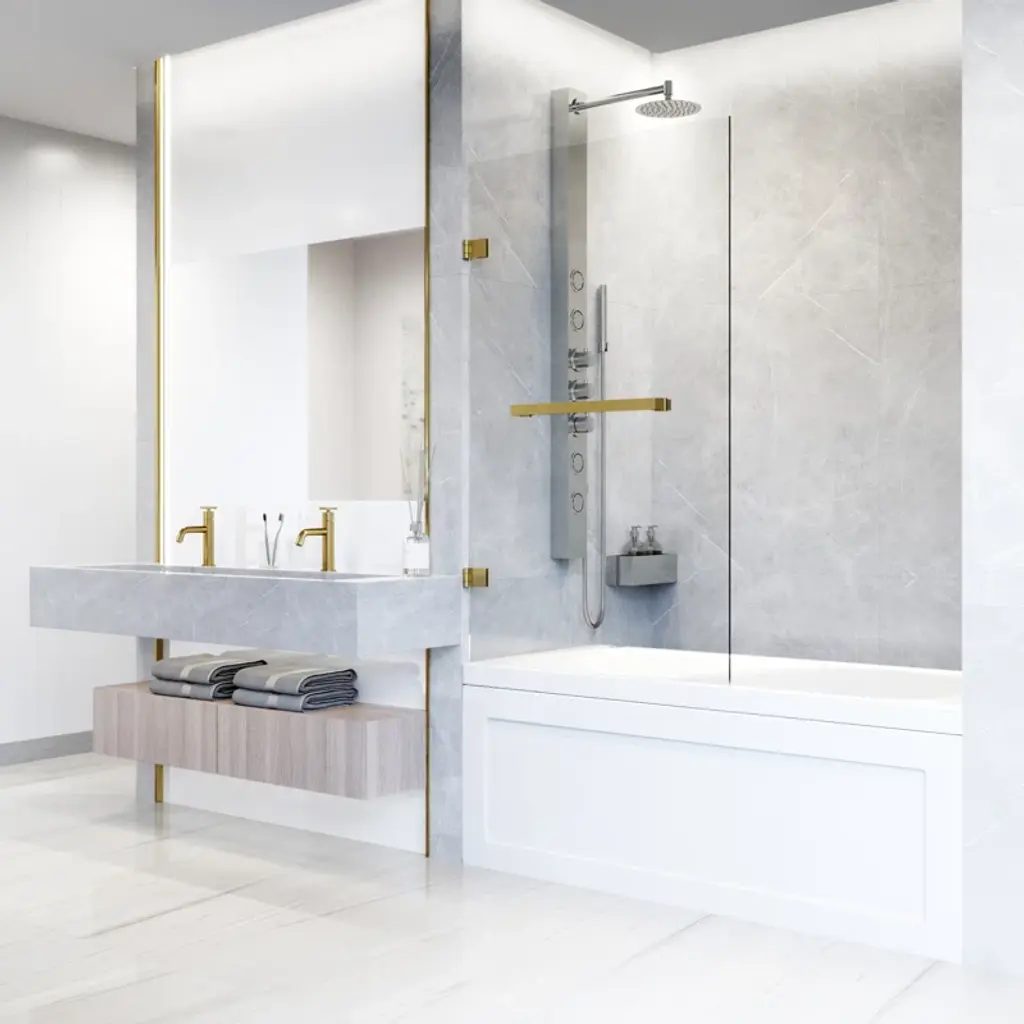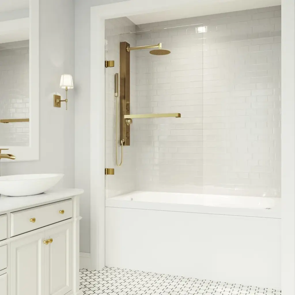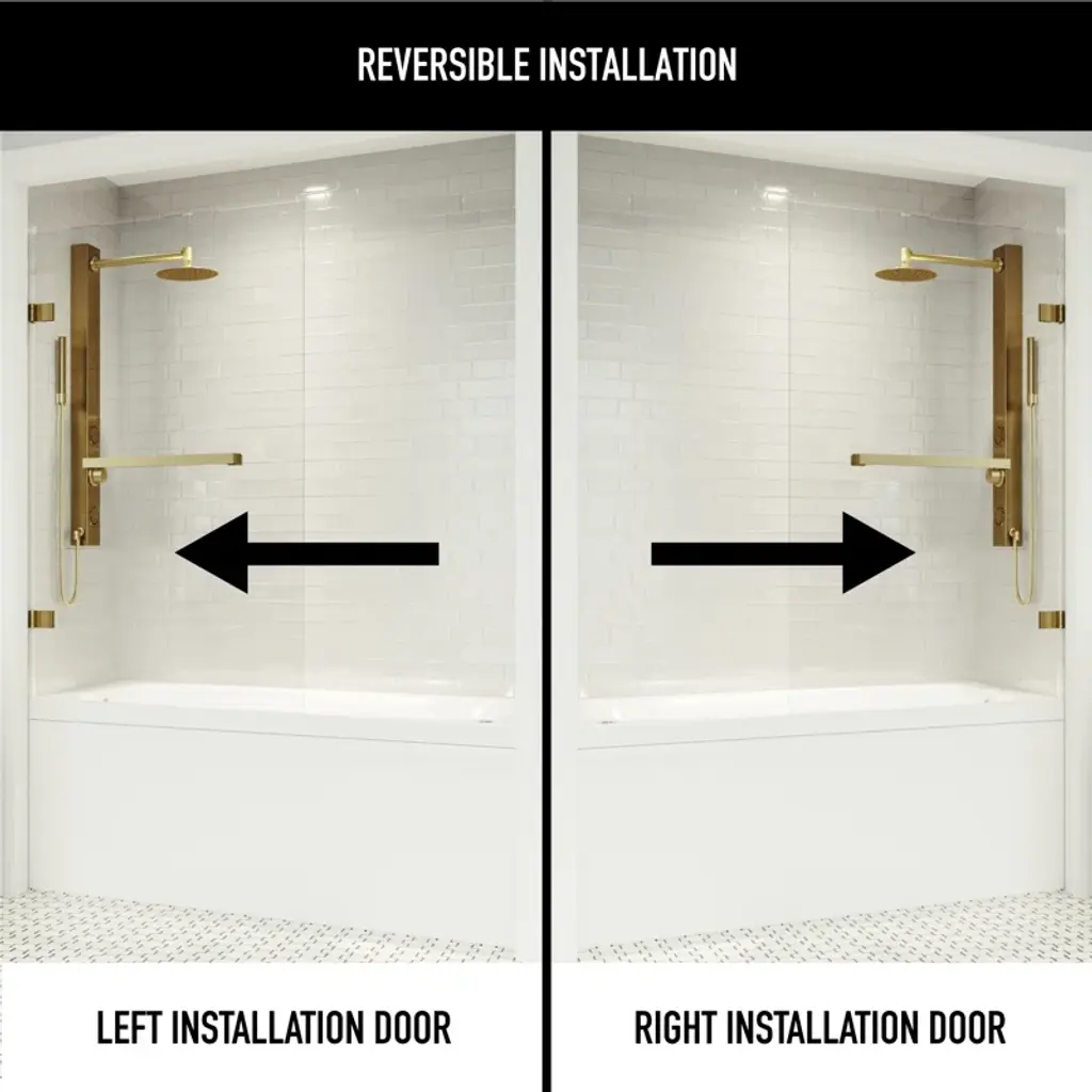 Step into sleekness. This frameless tub door features reversible handing and hinges for easy installation. The tempered glass and stainless steel hardware create a modern and minimalist look that suits any bathroom. Complete with a single handle for effortless access.