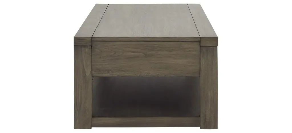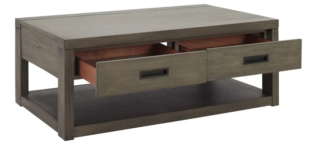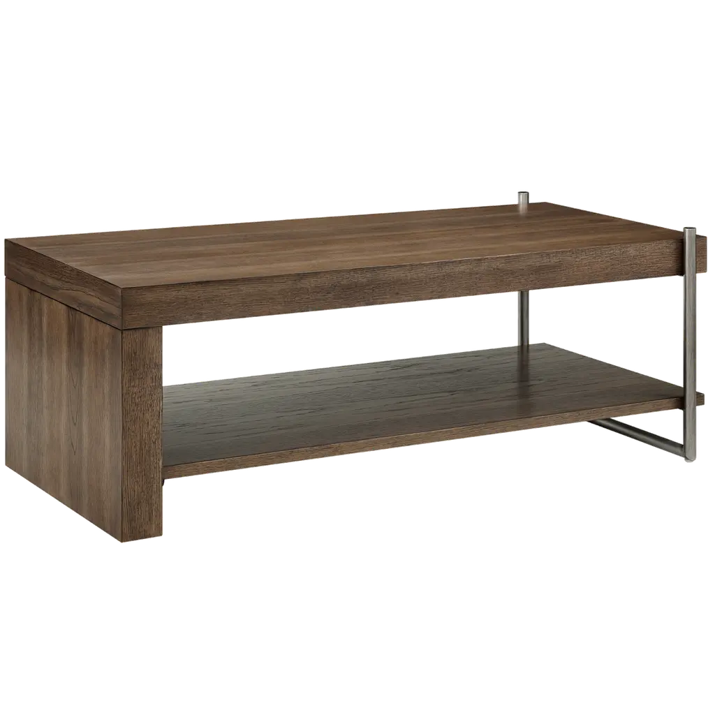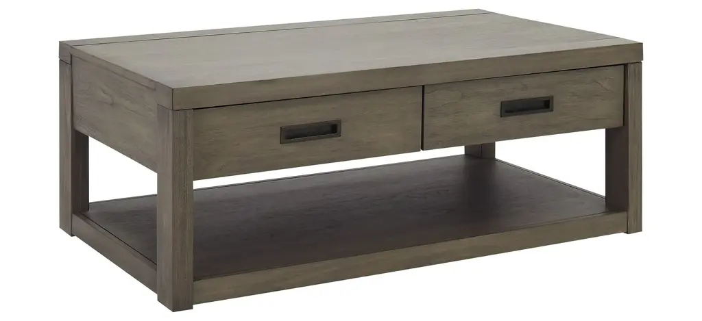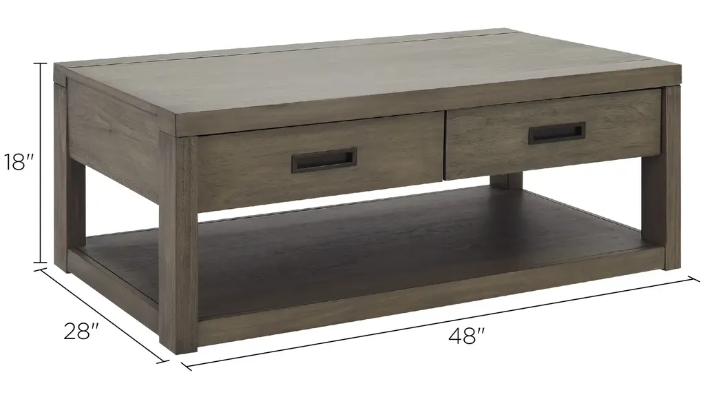 Add a dose of contemporary style to your living space with the Riata coffee table. The finish brings the poplar wood to life, and looks great in any decorating scheme. Ample storage and rolling casters offer convenience.