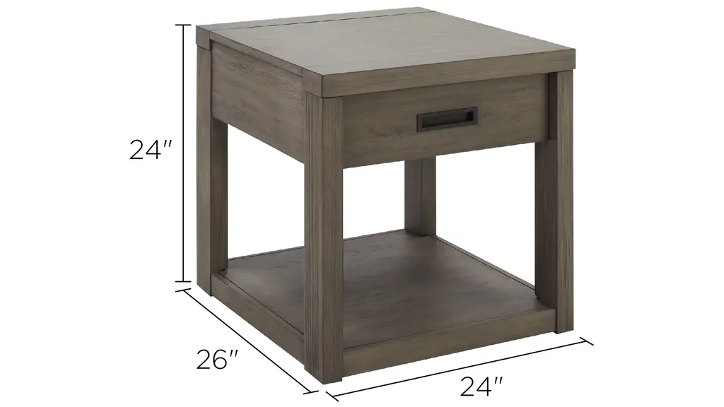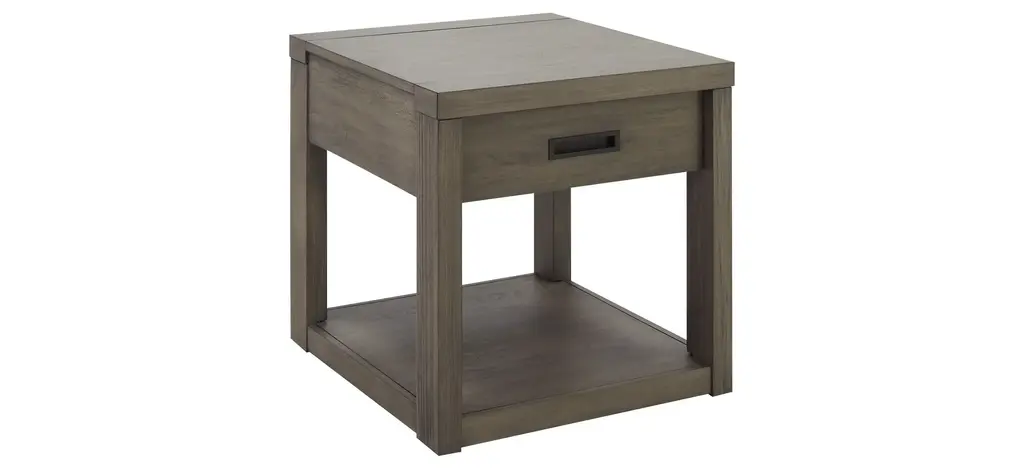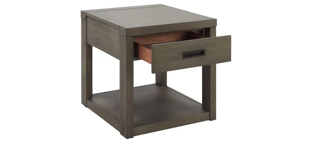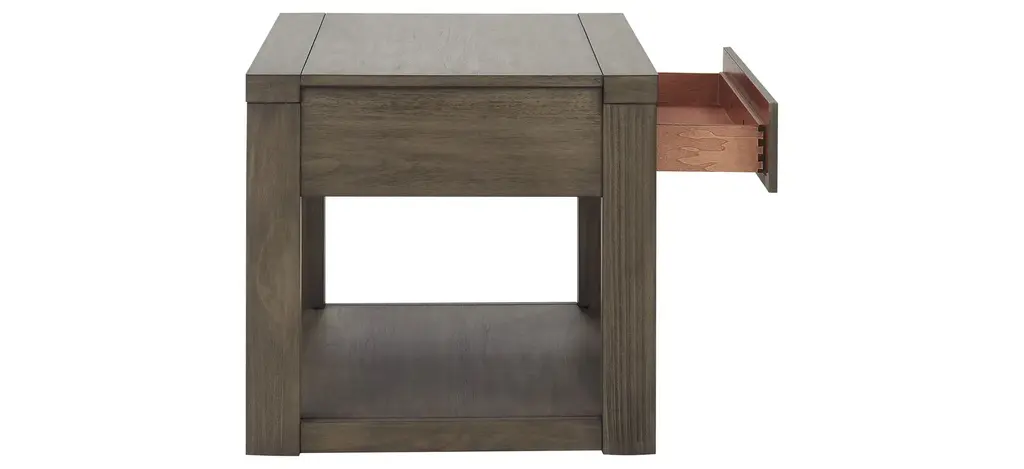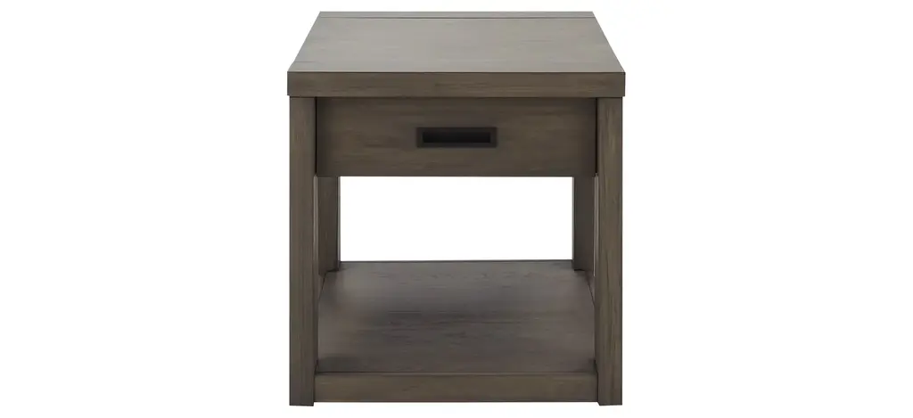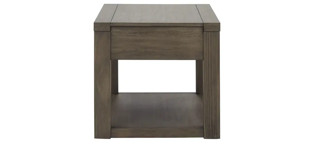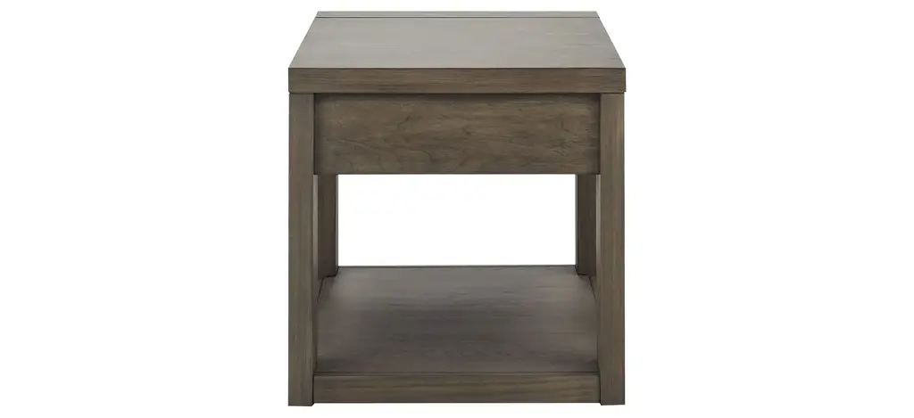 Add a dose of contemporary style to your living space with the Riata end table. The finish brings the poplar wood to life, and looks great in any decorating scheme. Ample storage and rolling casters offer convenience.