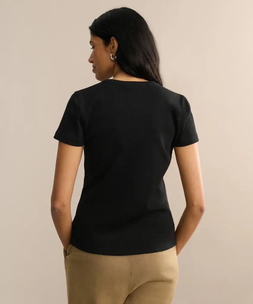 Rib Tee Black We made your brand new dream tee—with a fitted body and U-shape neck that gives a basic look an elevated edge, our Rib Tee will be a closet essential for years to come.