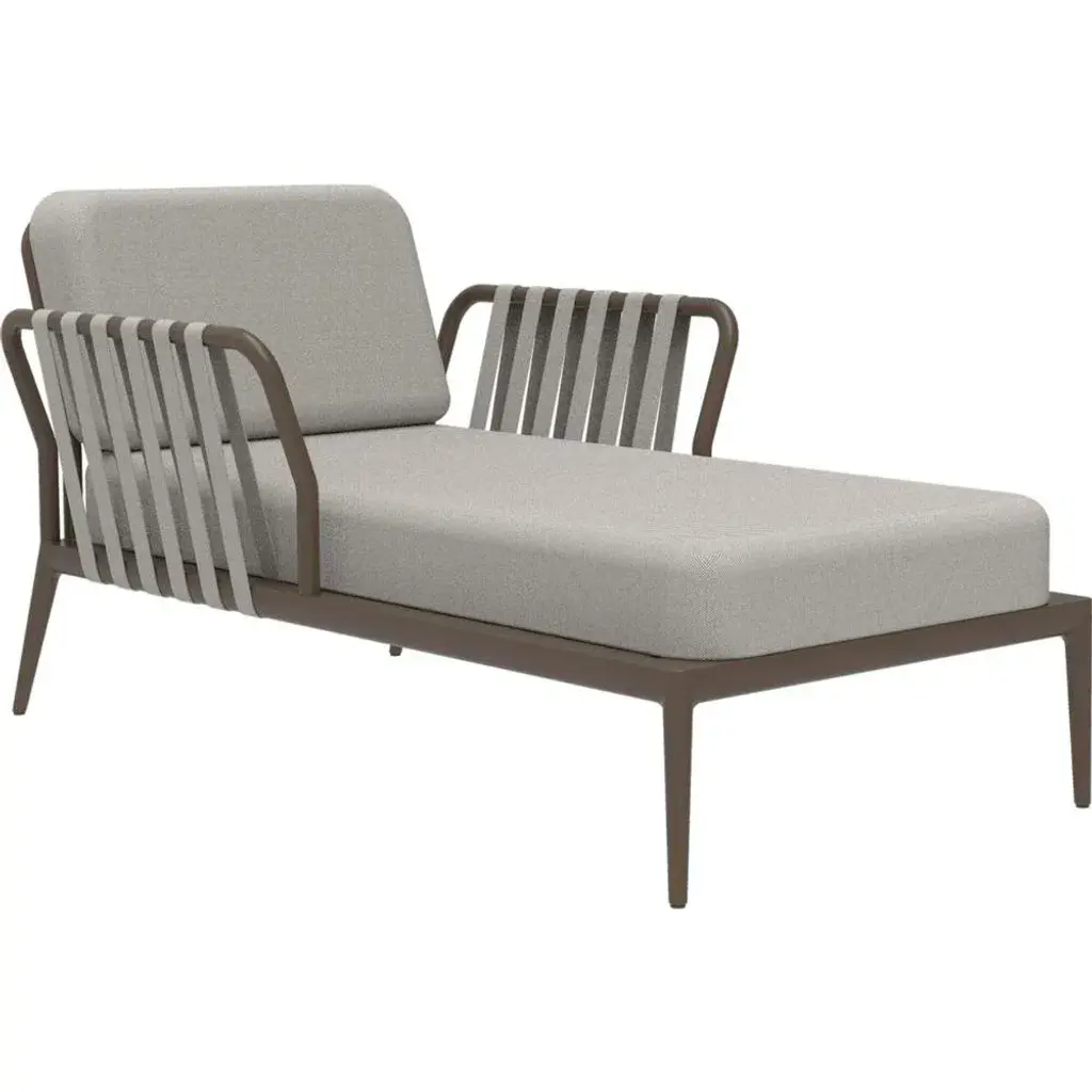 Ribbons bronze divan by mowee dimensions: d91 x w155 x h81 cm (seat height 42cm) material: aluminum and upholstery. Weight: 30 kg. An unmistakable collection for its beauty and robustness. A tribute to the valencian manufacturing tradition as a challenge to innovation, making it sustainable and durable. A collection with details that make it unique. We discover its most representative side, ribbons. Engineering and tradition come together, thus achieving a collection with its own character.