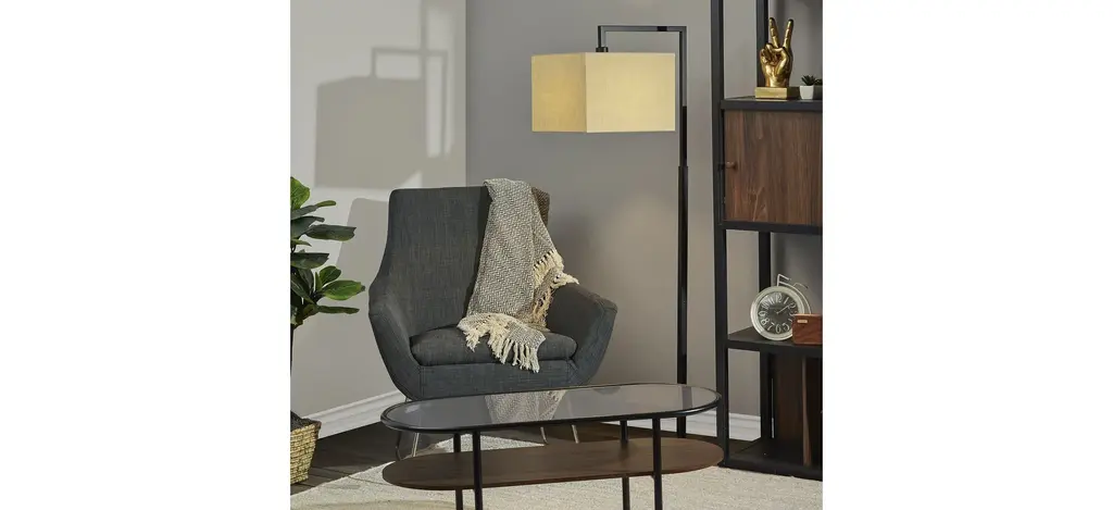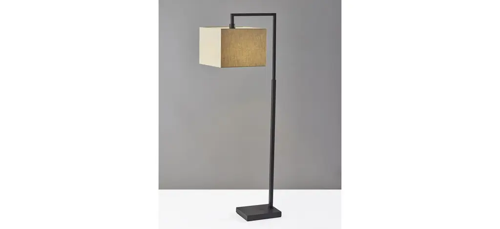 With a clean, minimalist shape and a simple color palette, the 60" tall Richard floor lamp exudes modern style. It features a black metal rectangular base measuring 11" by 8.5". The black finish continues up the narrow rectangular stem leading to a square, beige textured fabric shade that softly distills the light. The 100W bulb (not included) is operated by a 3-way rotary switch located on the socket, allowing you to easily adjust the lighting level between low, medium, high, and off when using a 3-way bulb. When using a regular bulb, the rotary switch turns the lamp on or off.