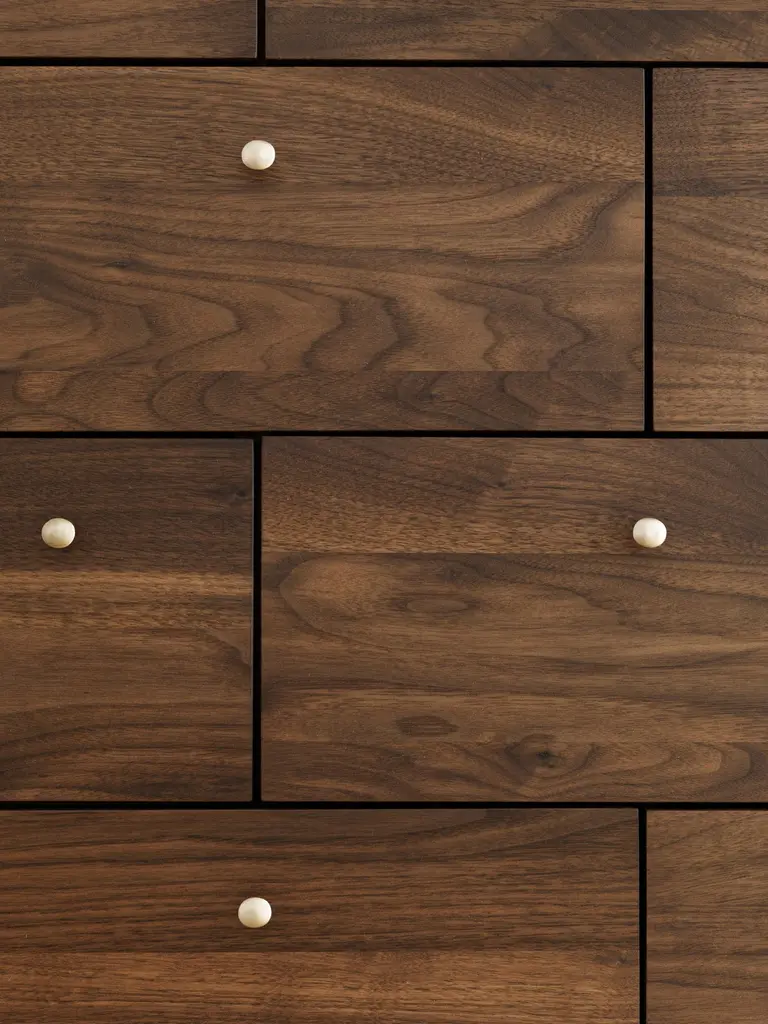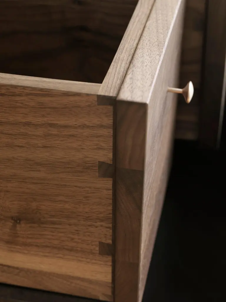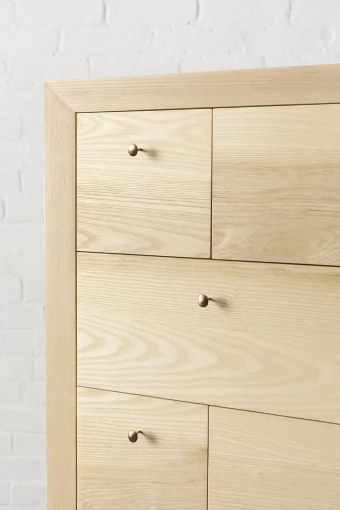 A modern perspective on the Classic 18th c. Highboy, Richard Watson's Highboy stands tall and delicate with handcrafted dovetail drawers and slides. The solid bronze pulls, which were originally designed for this piece, are cast locally and hand finished in the Richard Watson studio. The drawer fronts are thoughtfully selected for their distinct grain patterns and arranged to create a quilt-like composition. Each piece is made in Pawtucket, RI by a team of men and women who are passionate about their Craft. The pieces are constructed using select domestic hardwoods and traditional joinery and hand finished with natural oils, lacquers and wax. Available in walnut, white oak, and bleached ash.