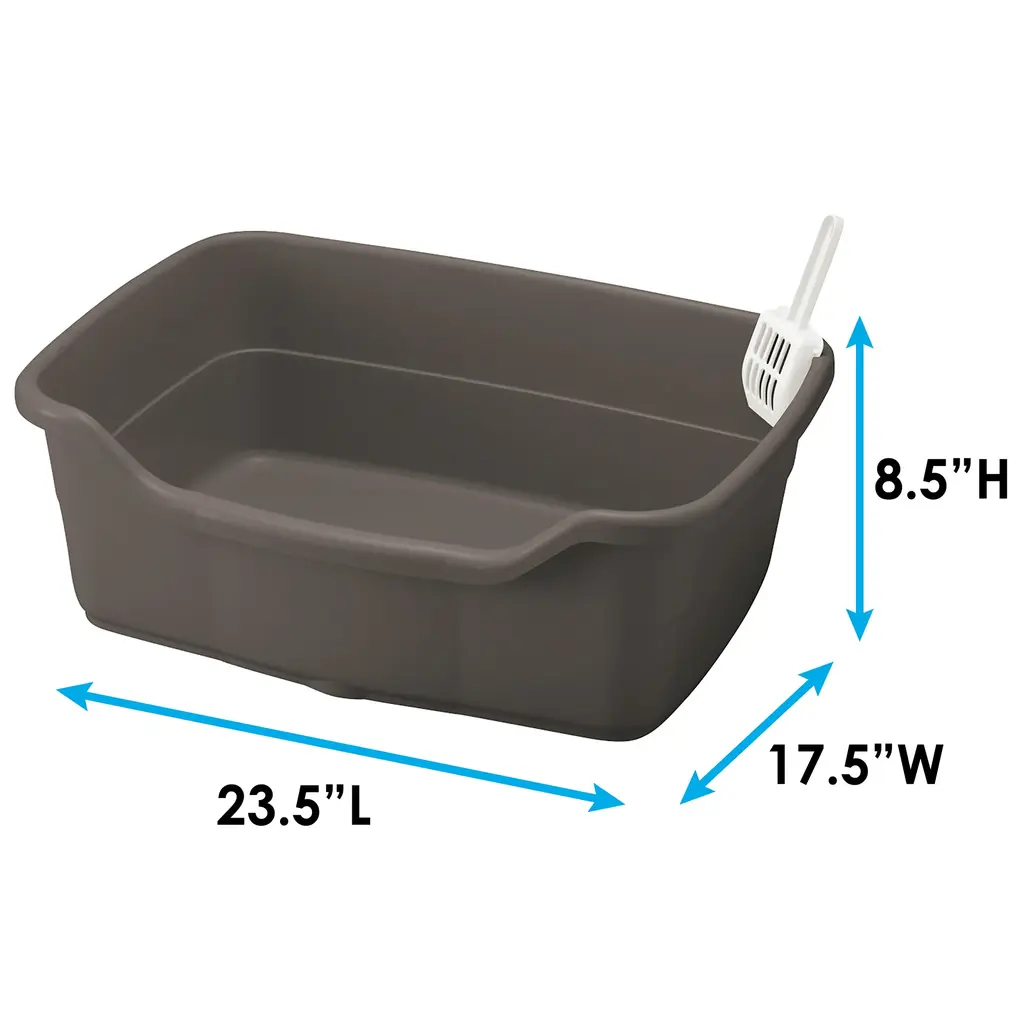 PAW TRAX Wide Cat Litter Pan helps keep litter inside the pan where it belongs and not on your floors. This deep litter pan is designed to minimize tracking of cat litter. The front entrance grants quick and easy access to cats of all sizes. The top open design is ideal for quick spot cleaning of small messes and perfect for cats who are uncomfortable or have difficulty using fully enclosed litter boxes. It is made of durable plastic that makes cleaning a breeze. Includes a scoop that can be hung on a hook inside the litter pan for convenient storage. Deep litter pan keeps litter inside and minimizes tracking. Front entrance allows cats quick and easy access. The top open design is ideal for quick cleaning. Made of durable, easy to clean, plastic. Includes attachable scoop. Large pan accommodates cats of all sizes.