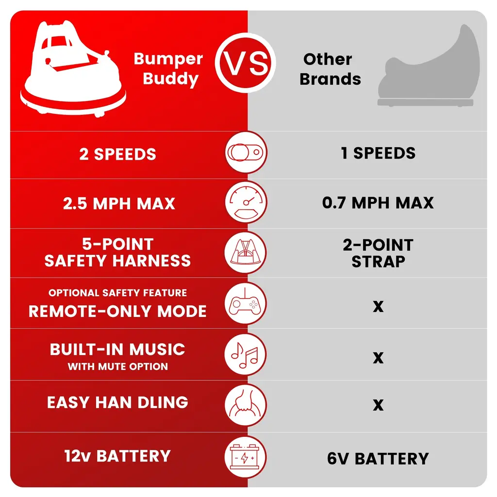 【Bumper Car with 2 Speed】Patikuin Bumper Car for Kids allows your child to enjoy top speeds of up to 1.9mph for unparalleled fun and excitement! Suitable for children aged 1.5-8. Enjoy the thrilling collision experience! 【Funny Ride on Toy】Our Kids Bumper Car comes with built-in music and Bluetooth mode, so your kids can enjoy their favorite tunes while cruising around. The bumper car is equipped with LED light modes also make your child's driving process more cool and interesting. 【Perfect Bumping Toy Gifts for kids 】ride on bumper cars come with cute stickers, and children can decorate the car body according to their own preferences and creativity, turning the bumping car into their own personalized car. 【2 Driving Modes】 Allow parents to control bumper cars with remote control to ensure children's safe riding , or let kids ride by themselves and enjoy the thrill of independent driving. 【Safe and Secure】High-quality materials ensure durability and a maximum weight capacity of 66lbs. Our electric bumper car for kids is equipped with a reliable 12V battery and features a 5-point safety belt for maximum protection.