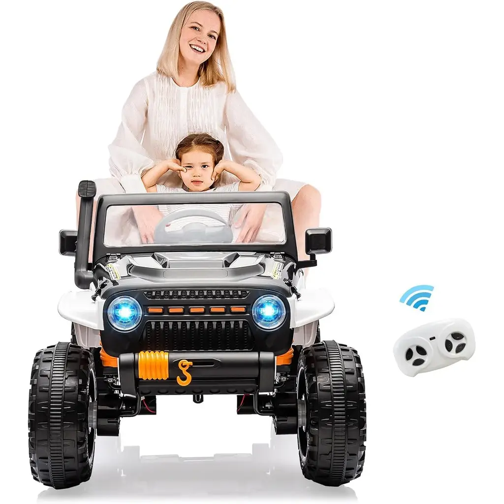 PARENT-CHILD CAR - upgraded version of the extended body, reinforced rear seat support plate can sit adults. Cool and domineering, full off-road style, take your baby and enjoy cross-country. UPGRADED & ENLARGED BATTERY DESIGN - Our ride car upgraded battery design, long-lasting range more durable, removable battery, easy to put forward charging, more convenient and safe! REALISTIC DRIVING ACTION - Give your kids a realistic behind-the-wheel experience with controls sized for small hands and a powerful 12V battery that runs up to 2 hours on a full charge. SAFETY & INTERESTING - Includes plastic wheels, safety belts with locking doors, and a safe 3.7mph max speed for smooth cruising around the house. Connect your kid's favorite devices to the built-in Bluetooth speakers and add a musical element to playtime. BEST GIFT FOR KIDS - Hetoy kids ride-on truck is made of safe material and equipped with multiple functions that can enrich your little one's life and enhance parent-child relationship. Certificated with ASTM and CPSIA, it can be a surprising Christmas gift or birthday gift for your children or grandchildren.