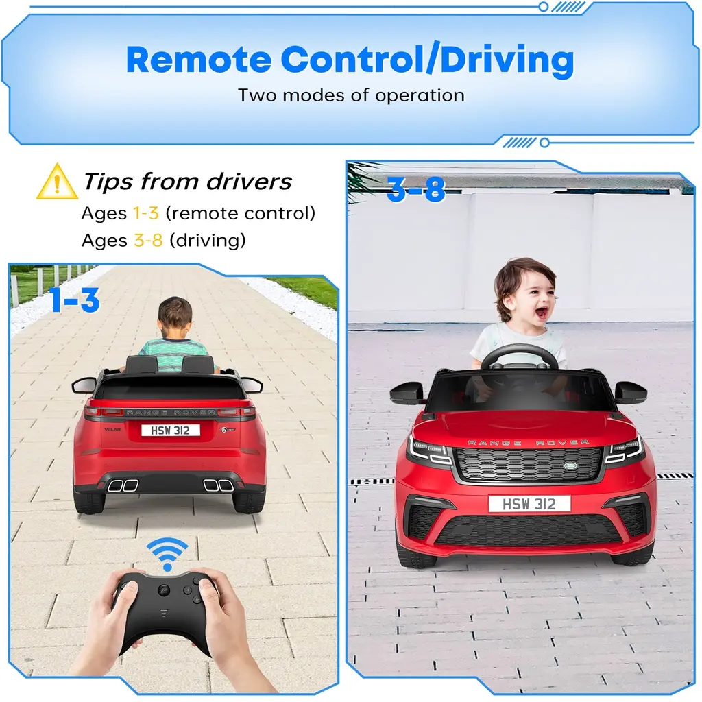 【Licensed Land Rover Ride Car】 Officially-licensed Land Rover ride-on car that allows your child to comfortably cruise in the vehicle and bring a friend or sibling along for the ride.【Premium Performance】This car has a rocking function, so that the kids can do the rocking car at home. Portable Handle design, convenient for parents to pull home easily when the car is out of power. Bluetooth remote control one-to-one function, remote control priority can be the first time to protect the safety of children. Four-wheel shock absorbers and ultra-durable battery to withstand years of use.【Auxiliary Players and Extras】Kids can plug in auxiliary input devices or link Bluetooth to play their favorite music. In addition, working LED headlights, horns, and starting sounds create a realistic ride to enjoy!【Parent Remote & Manual Mode】 By using the parent remote control, parents can park the car in case of an emergency and also have full control of the vehicle remotely. Manual mode is better for kids who like the fun of steering independently. Safety belts and soft start design prevent children from being startled by sudden acceleration.【Best Gift for kids】This car is made of safe material and equipped with multiple functions that can enrich your little one’s life and enhance parent-child relationship. Certificated with ASTM and CPSIA, it can be a surprising Christmas gift or birthday gift for your children or grandchildren.