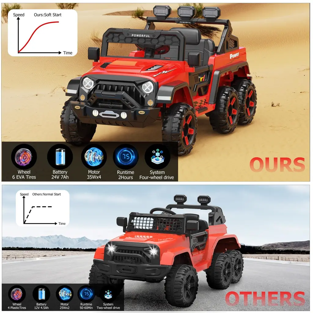 Ride On Car With 6 Eva Wheels&4wd, 24v Battery Powered Electric Car For Ages 3-6 Kids - Red