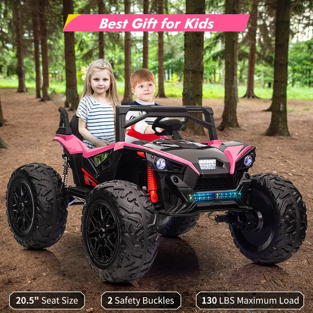 2 Seaters Truck w/ Electric Dump Bed: Jojoka ride on truck equipped with 2 seaters and came with the a safety belt that can protect kids during driving. Tipping bucket trunk design, can let the children experience the real joy of loading and unloading. Driving Modes and Remote Control Mode: The dump truck has two driving modes designed to be suitable for kid of different ages, let your kid can play from 1 to 8 years old. 1 to 3 years old can use the remote control mode, enjoy the time of parents and children together. 3 to 8 years old can use the driving mode, so that kid can experience the fun of driving. Multi-Function Control Console: Easy to start by one key. This electric dump truck features music, horn, headlights, high/low speed function and phone connections, which enables the kids can enjoy the rear driving experience with this car. 24V 4WD 6 Wheels Ride Truck: This dump truck is powered by a 24V rechargeable battery, and driven by 4pcs 75W motors. Max speed is up to 5mph. 20 Inch wide 2-seater is for 2 little kids or 1 to play together. Best Gift for kids: Our kids ride-on dump truck is made of safe material and equipped with multiple functions that can enrich your little one's life and enhance parent-child relationship. Certificated with ASTM and CPSIA, it can be a surprising Christmas gift or birthday gift for your children or grandchildren.