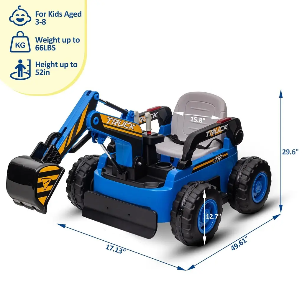 - Four Powerful Motors: This kids ride-on excavator features four robust 75-watt motors; it reaches speeds of 0.93-3.11 mph, making it ideal for thrilling adventures and an excellent birthday gift for children aged 3-8. - Long-Lasting Playtime: Equipped with a 12-volt 10 AH battery that charges fully in 8-12 hours, this ride-on toy delivers up to 50 minutes of uninterrupted fun; ideal for outdoor excursions without frequent recharging - Manual Mode and Remote Control Mode: The electric excavator offers realistic control with pedals and joysticks for a genuine driving experience; a remote control enhances parental supervision, ensuring safe and interactive playtime for kids - All-Terrain Capacity: Designed with wear-resistant and non-slip tires, this ride-on construction vehicle easily maneuvers through various terrains like sand, grass, and concrete; perfect for versatile outdoor fun and exploration - Fun and Functional: Featuring multimedia capabilities with MP3 music and a USB port, this battery-powered car includes bright rear lights; it creates a dynamic multi-sensory play environment for little ones weighing up to 66 lbs