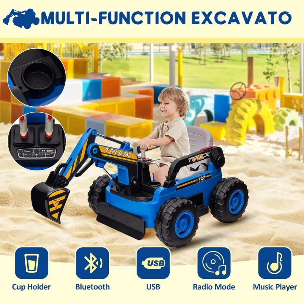 Ride On Excavator For Kids, 4Wd Electric Excavator Toy - Blue
