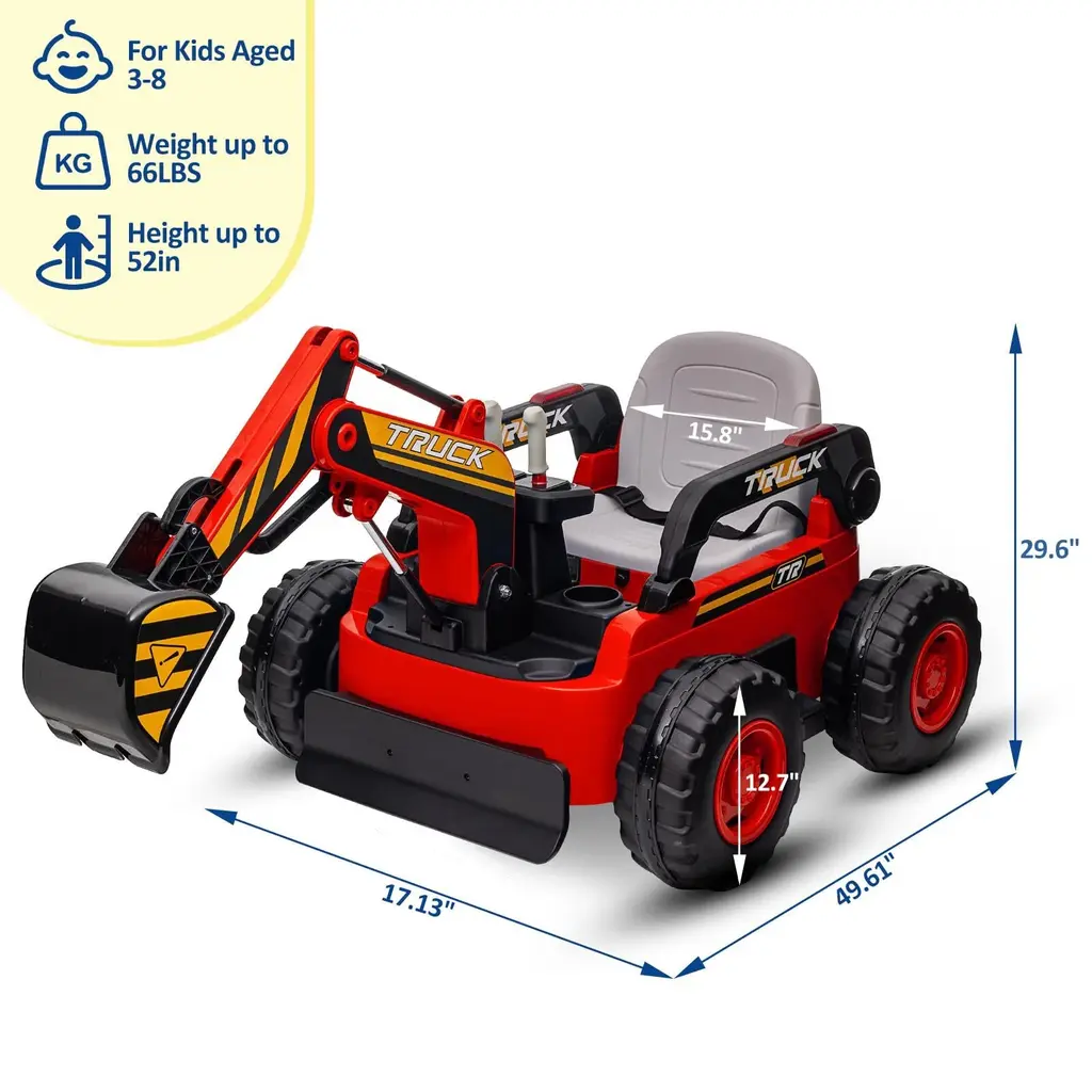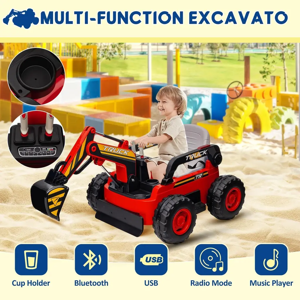 Ride On Excavator For Kids, 4Wd Electric Excavator Toy - Red