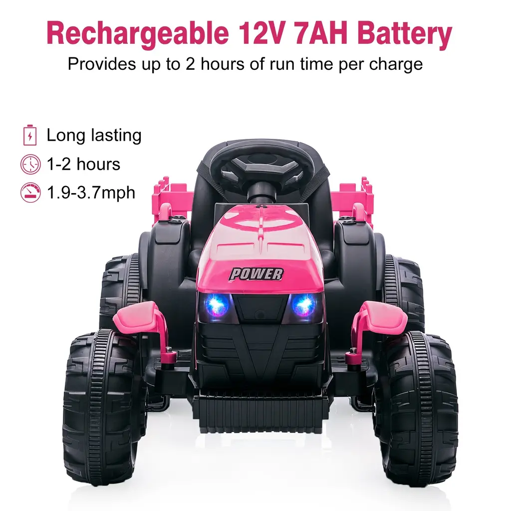 Ride On Tractor With Detachable Trailer, 12v 7Ah - Pink