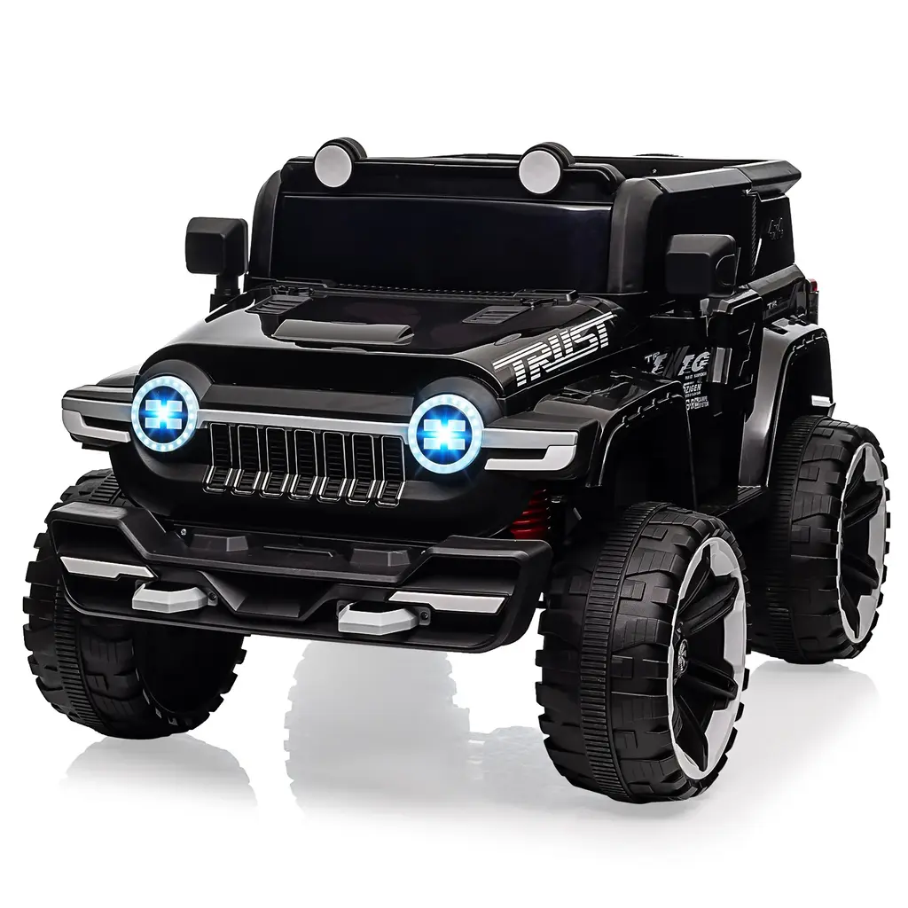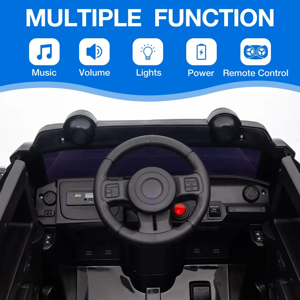 Realistic Driving Experience: This electric vehicle offers an authentic driving experience for kids, featuring both low and high-speed modes. The customized soft braking system enhances safety by minimizing impact during emergency stops, allowing children to safely enjoy their driving adventures.Enhanced Safety Features: Equipped with an adjustable safety belt and buckle, this ride-on truck ensures that children remain securely seated while driving. The openable doors provide easy access for kids to get in and out of the vehicle, prioritizing their safety and comfort.Parent-Controlled Remote: Parents can join in the fun with the remote control feature, which offers three adjustable speeds along with parking, forward, and reverse functions. Kids can also drive the truck manually using the steering wheel and lever, giving them the freedom to explore while still allowing parents to supervise.Simple Operation and Fun Features: Starting the electric truck is easy with a one-key start function. The vehicle is equipped with entertaining features such as a Bluetooth speaker, horn, and headlights, providing kids with an enjoyable and realistic driving experience that keeps them engaged.Safe Materials and Gift Potential: Constructed from safe materials, this kids’ ride-on truck is designed to enhance playtime and strengthen the parent-child relationship. It's an ideal birthday or Christmas gift for children or grandchildren, offering hours of fun and adventure while ensuring their safety.