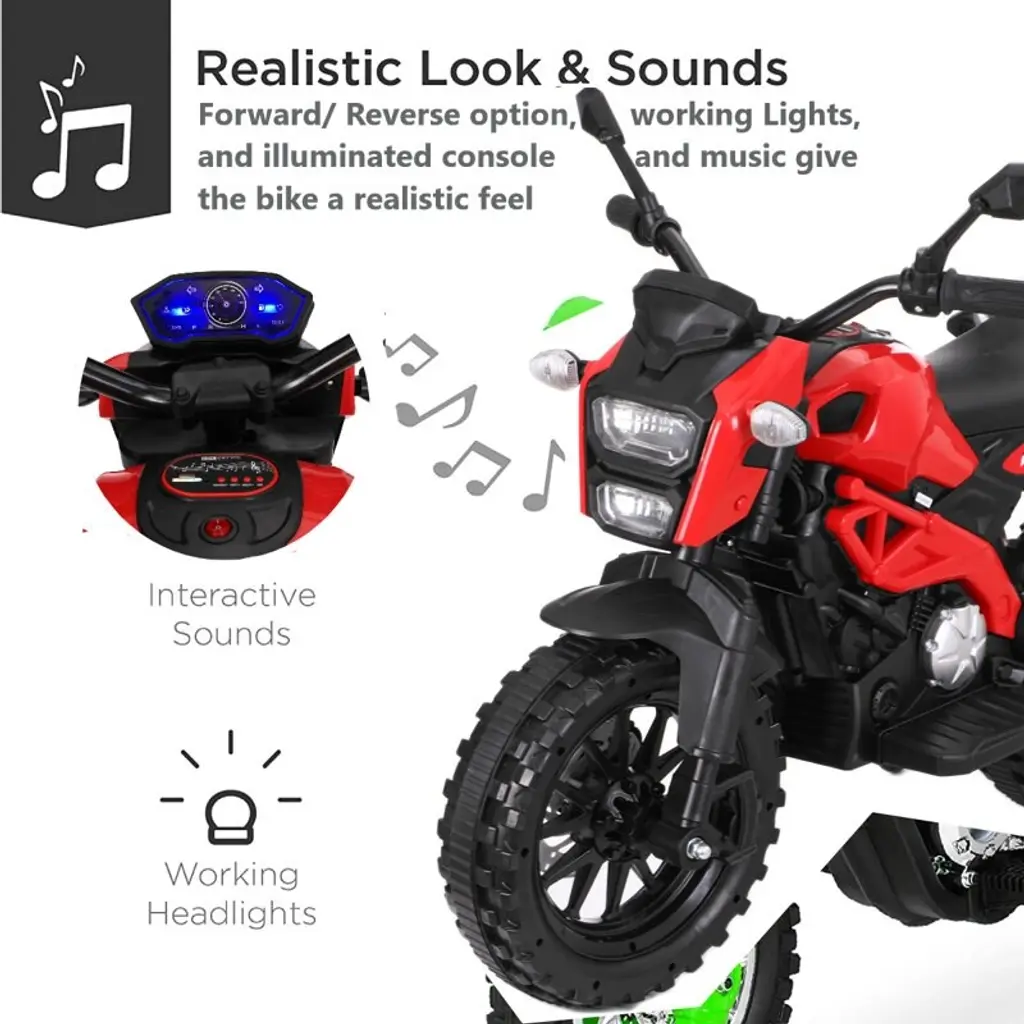 Description:This electric motorcycle for kids is a wonderful choice for young adventurers. It offers a thrilling and safe riding experience. The various functions ensure that children have fun while also developing their skills. The soft-start technology prevents sudden scares, and the independent spring shock absorber makes for a smooth ride. The entertainment features keep them engaged, and the reliable battery ensures long playtimes. It's a perfect gift for both indoor and outdoor play, allowing kids to explore and have a great time.