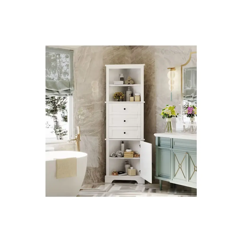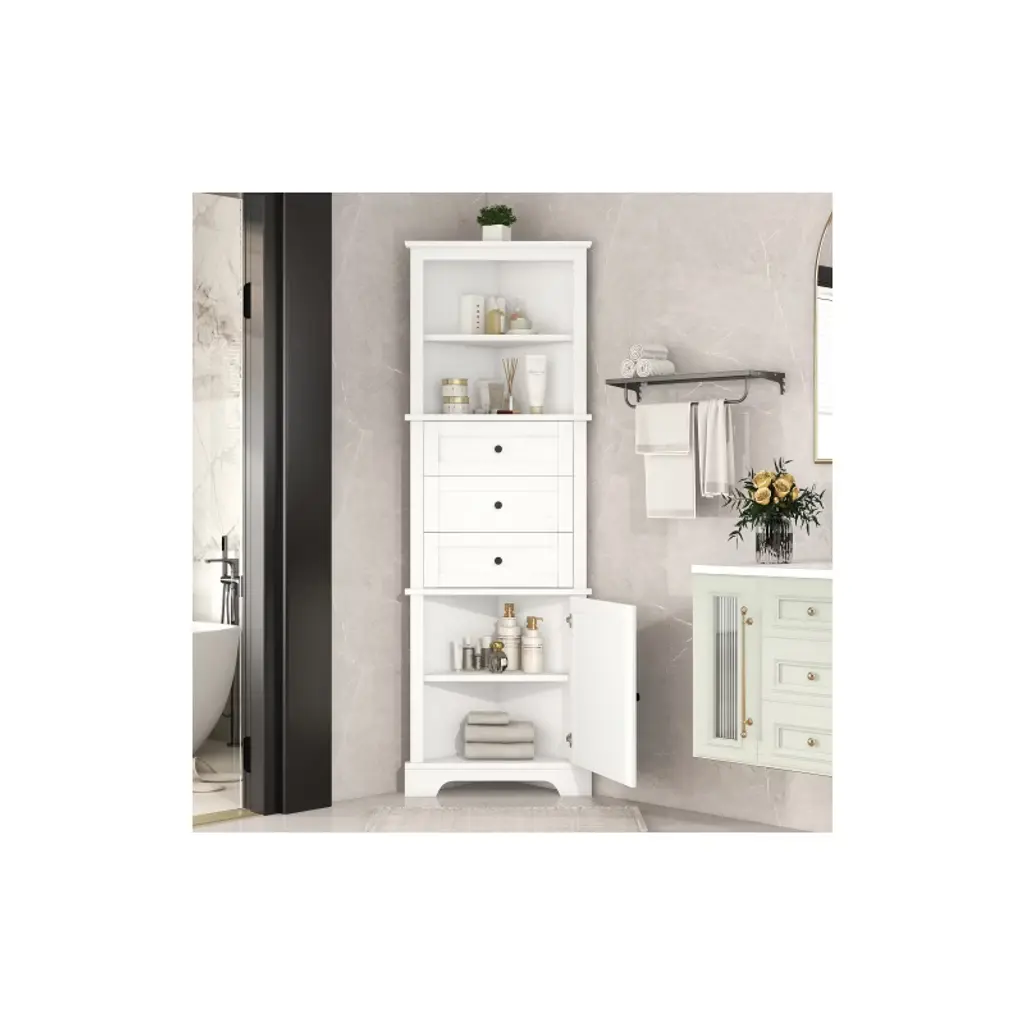Ridstar 68.9 In. H White Triangle Tall Bathroom Cabinet With 3 Drawers And Adjustable Shelves