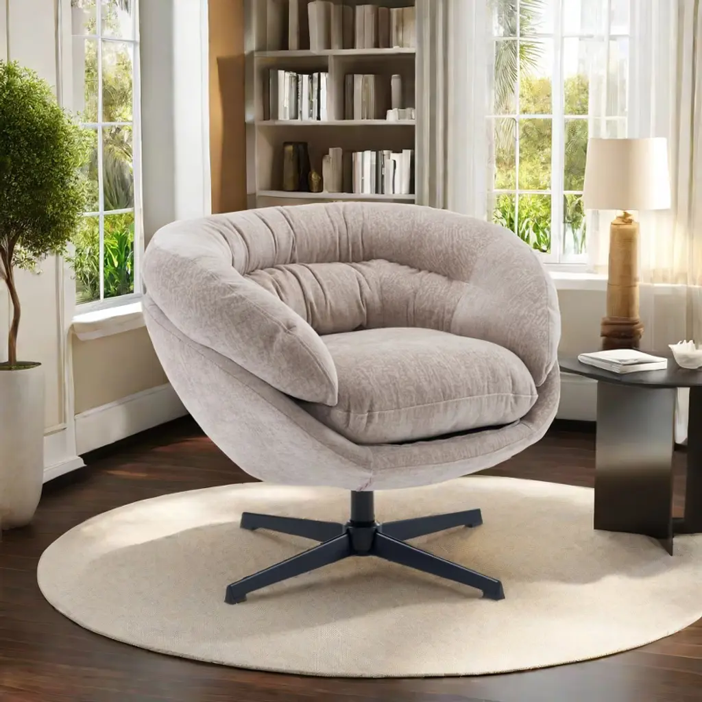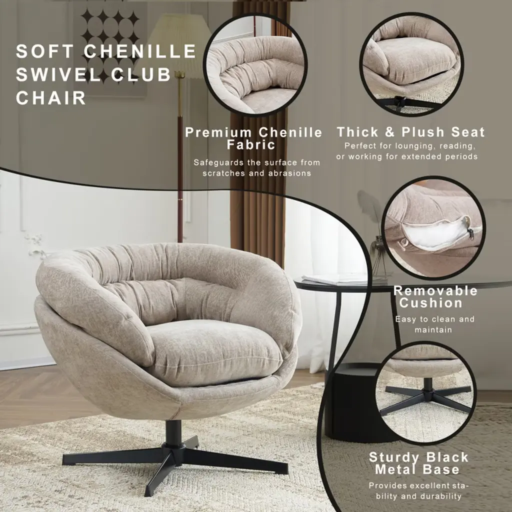 Ridstar Upholstered Modern Metal Chenille & Accent Chair With Cushion, Fluid 360 Degree Swivel For Reading, Living Room-brown